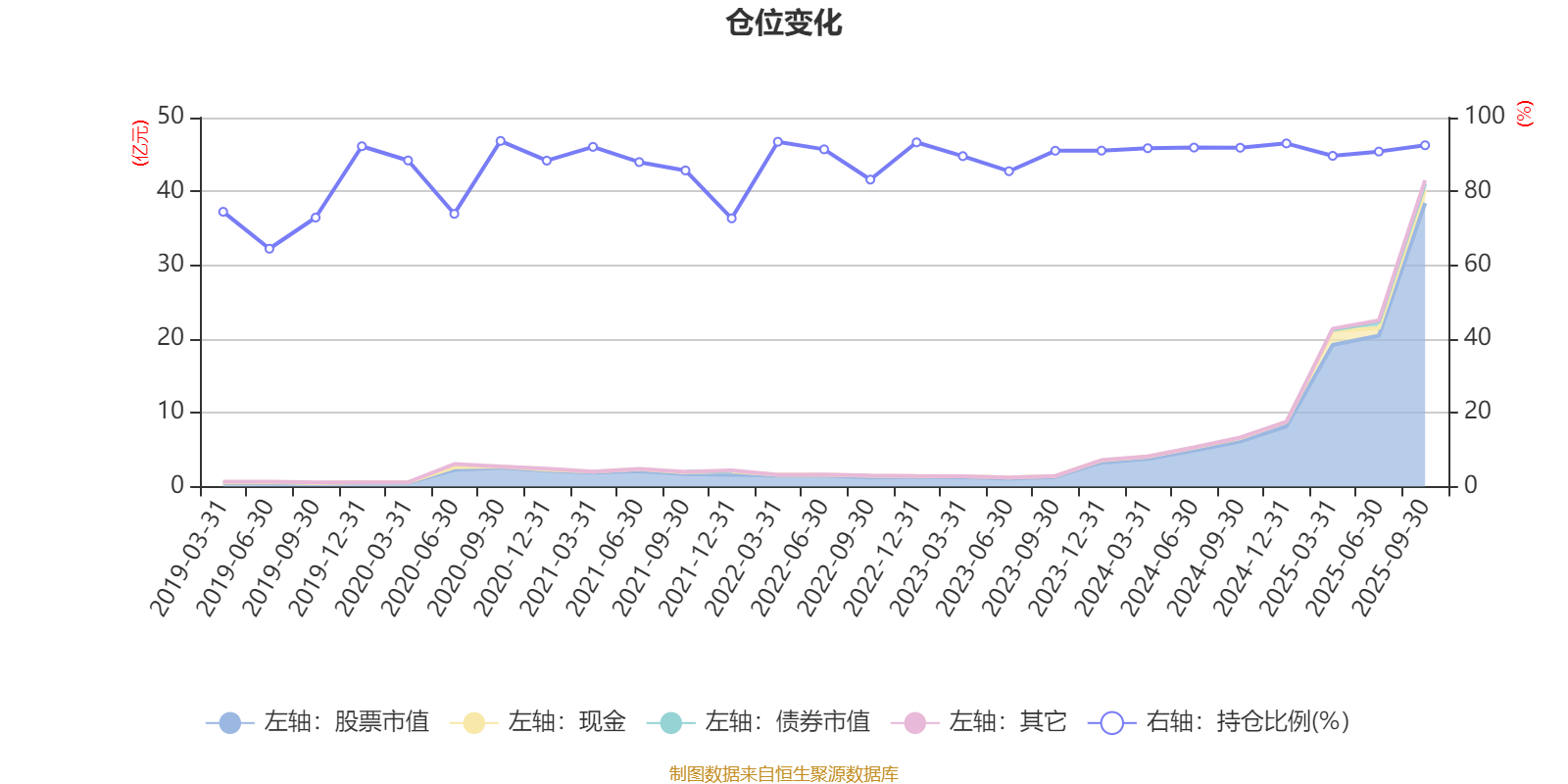 据定期报告数据统计,近三年平均股票仓位为90.98%,同类平均为86.76%。2020年三季度末基金达到93.68%的最高仓位,2019年上半年末最低,为64.47%。