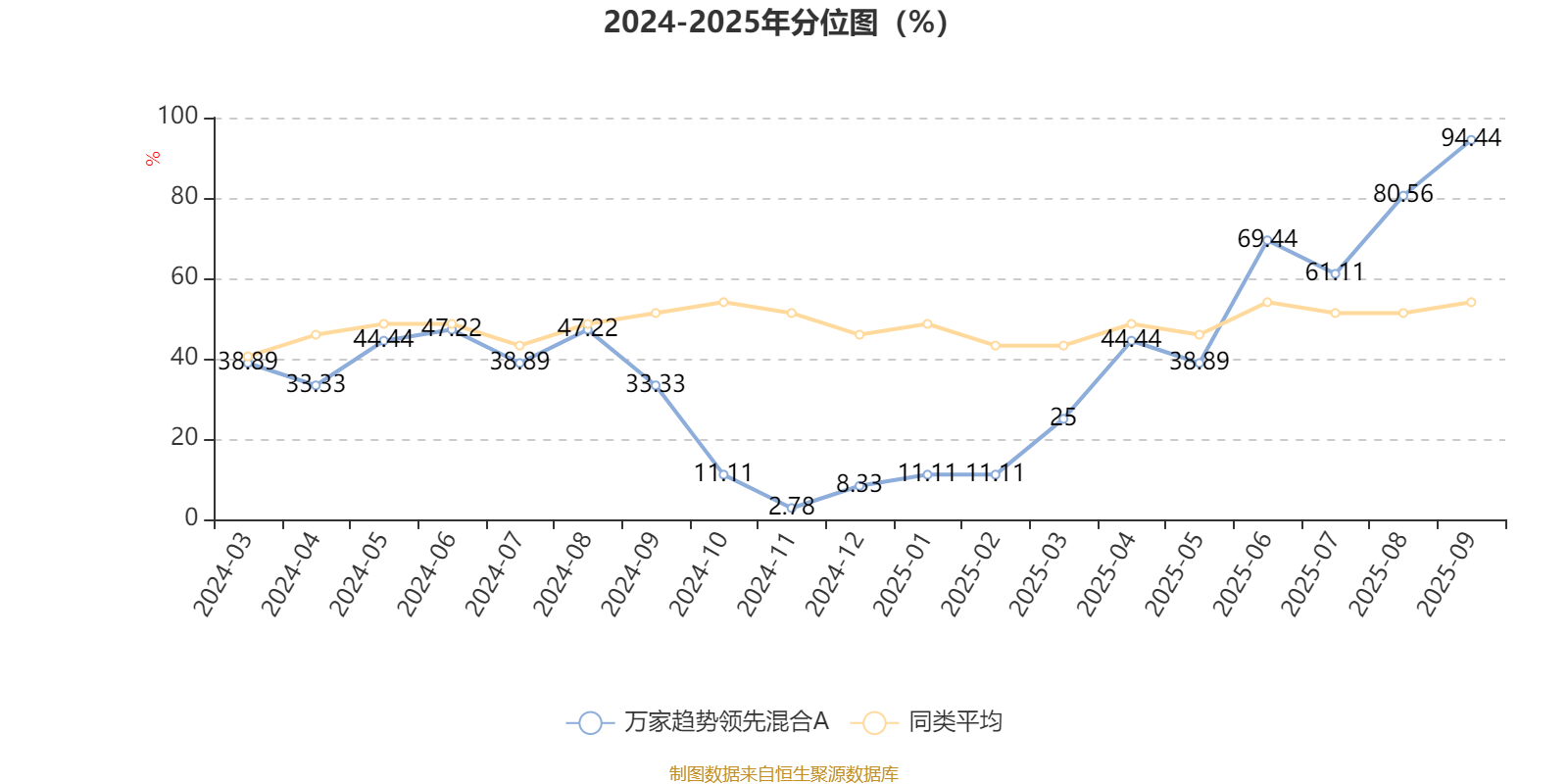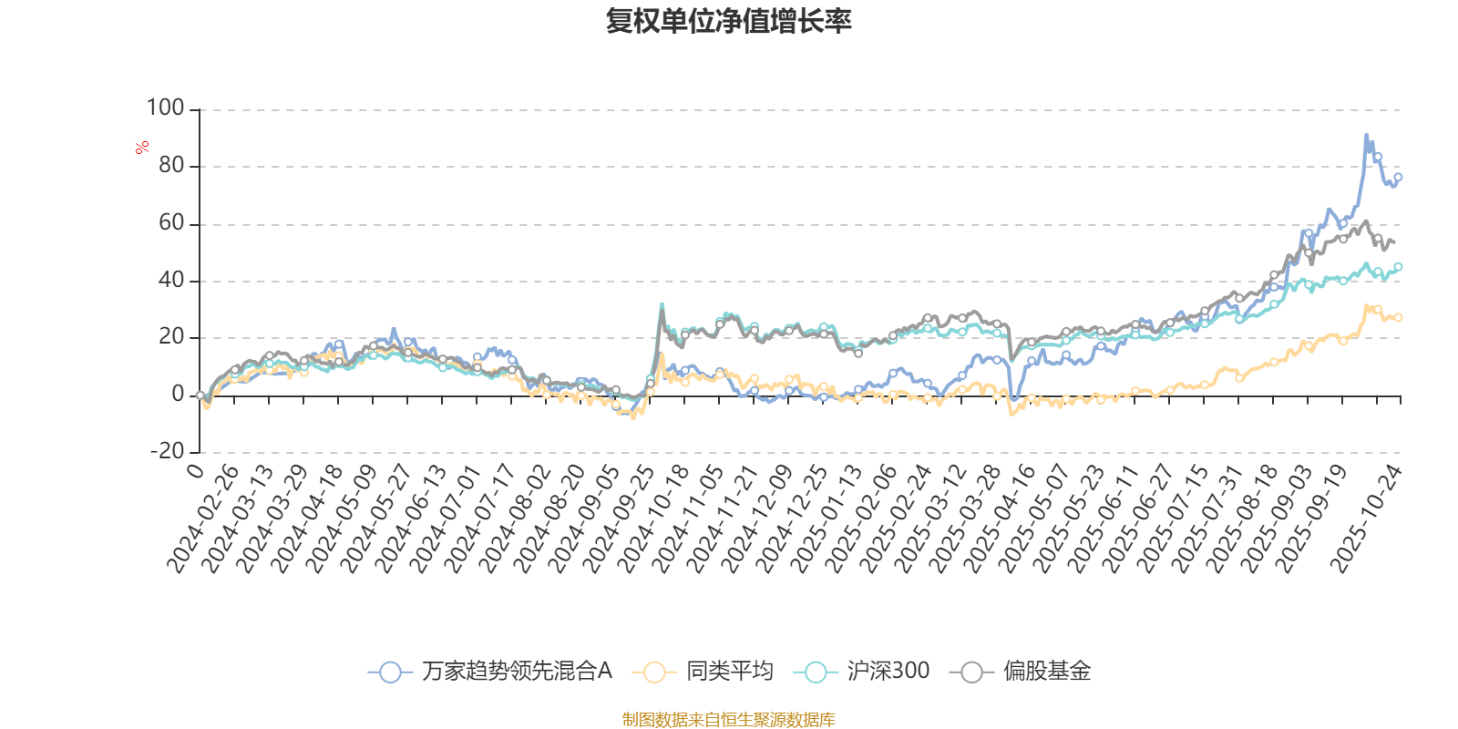 截至10月24日,万家趋势领先混合A近三个月复权单位净值增长率为32.48%,位于同类可比基金3/49;近半年复权单位净值增长率为57.85%,位于同类可比基金2/49;近一年复权单位净值增长率为61.82%,位于同类可比基金1/42。