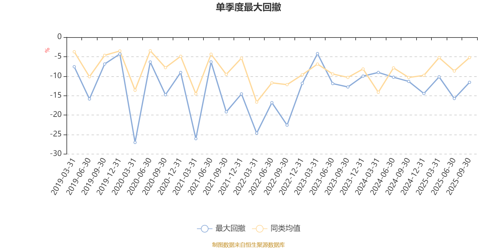 截至10月24日,基金近三年最大回撤为24.68%,同类可比基金排名365/1283。单季度最大回撤出现在2020年一季度,为27.05%。