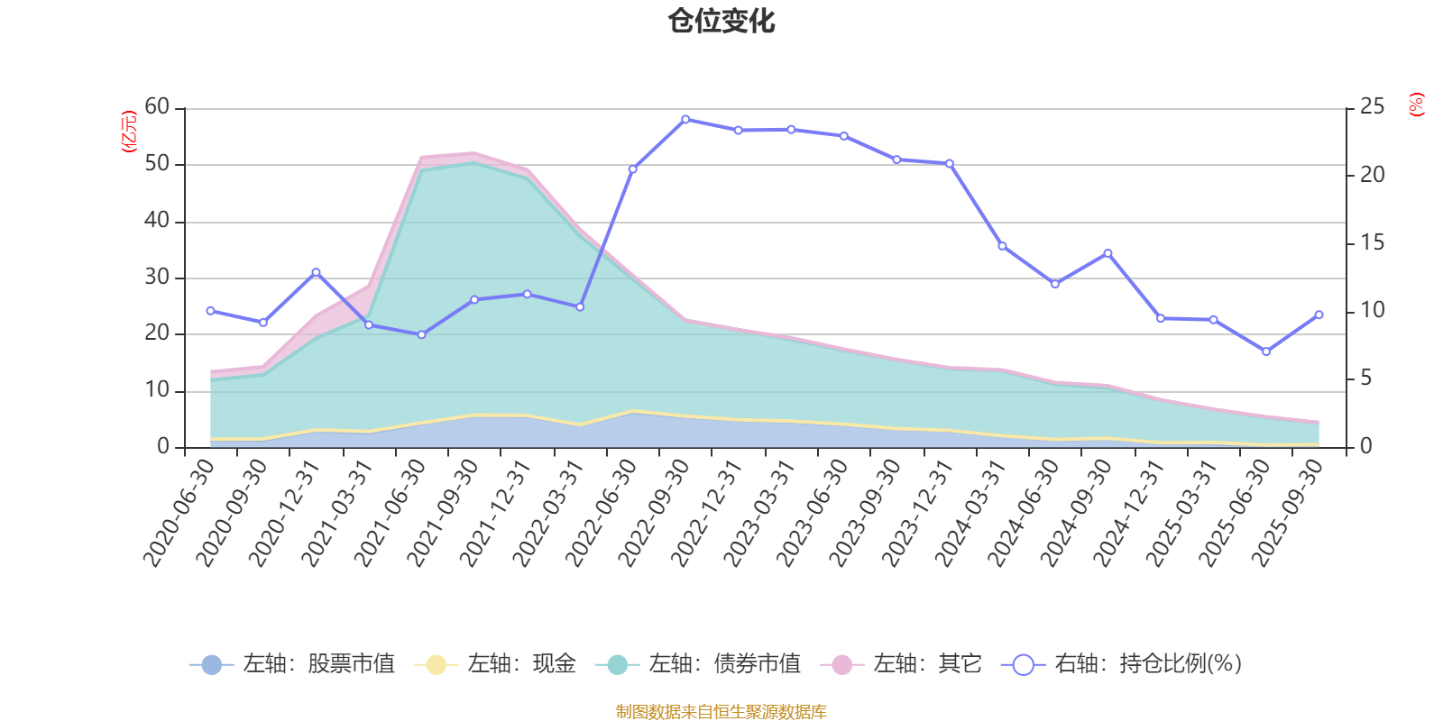 据定期报告数据统计,近三年平均股票仓位为15.74%,同类平均为19.03%。2022年三季度末基金达到24.18%的最高仓位,2025年上半年末最低,为7.07%。