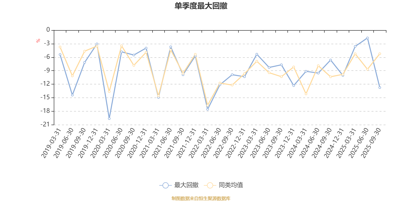 截至10月24日,基金近三年最大回撤为27.53%,同类可比基金排名458/1283。单季度最大回撤出现在2020年一季度,为19.63%。