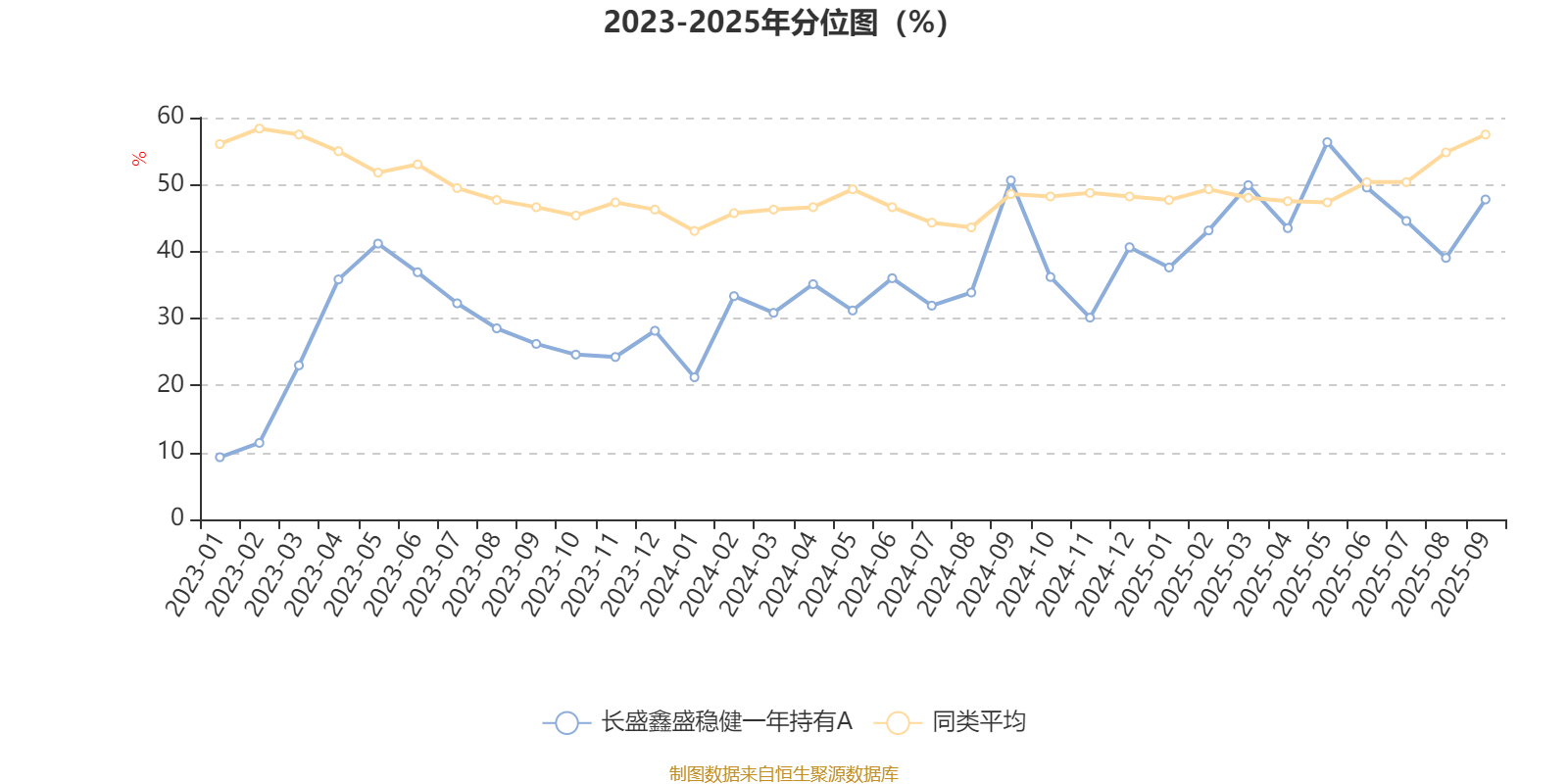 通过所选区间该基金净值增长率分位图,可以观察该基金与同类基金业绩比较情况。图为坐标原点到区间内某时点的净值增长率在同类基金中的分位数。