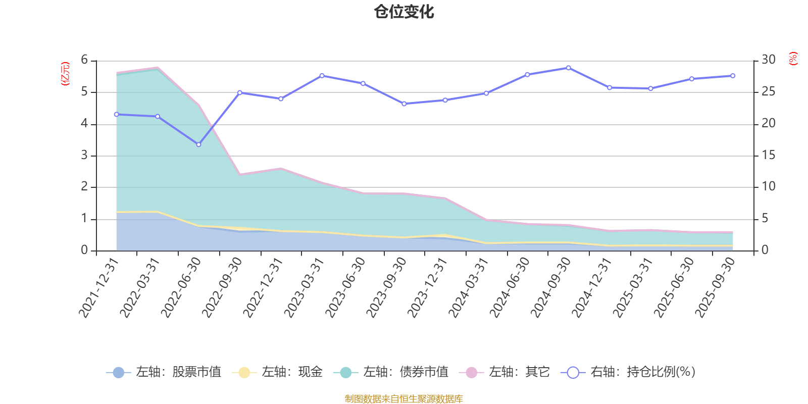 据定期报告数据统计,近三年平均股票仓位为26.04%,同类平均为19.03%。2024年三季度末基金达到28.86%的最高仓位,2022年上半年末最低,为16.75%。