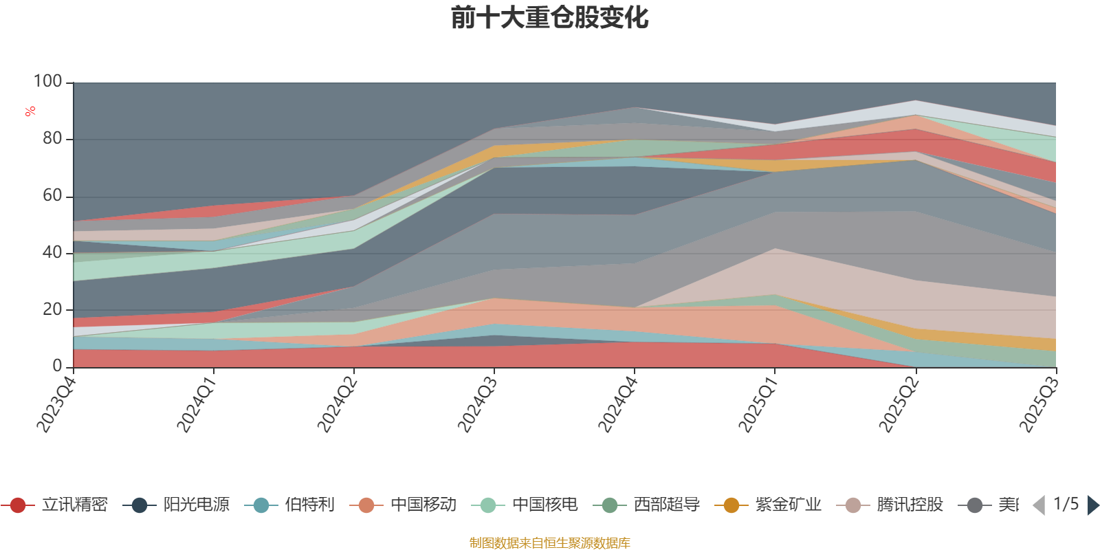 该基金持股集中度较高。截至2025年三季度末,基金重仓股分别是美的集团、腾讯控股、贵州茅台、阿里巴巴-W、恺英网络、中海物业、西部超导、紫金矿业、川投能源、中国海洋石油、中国海油。