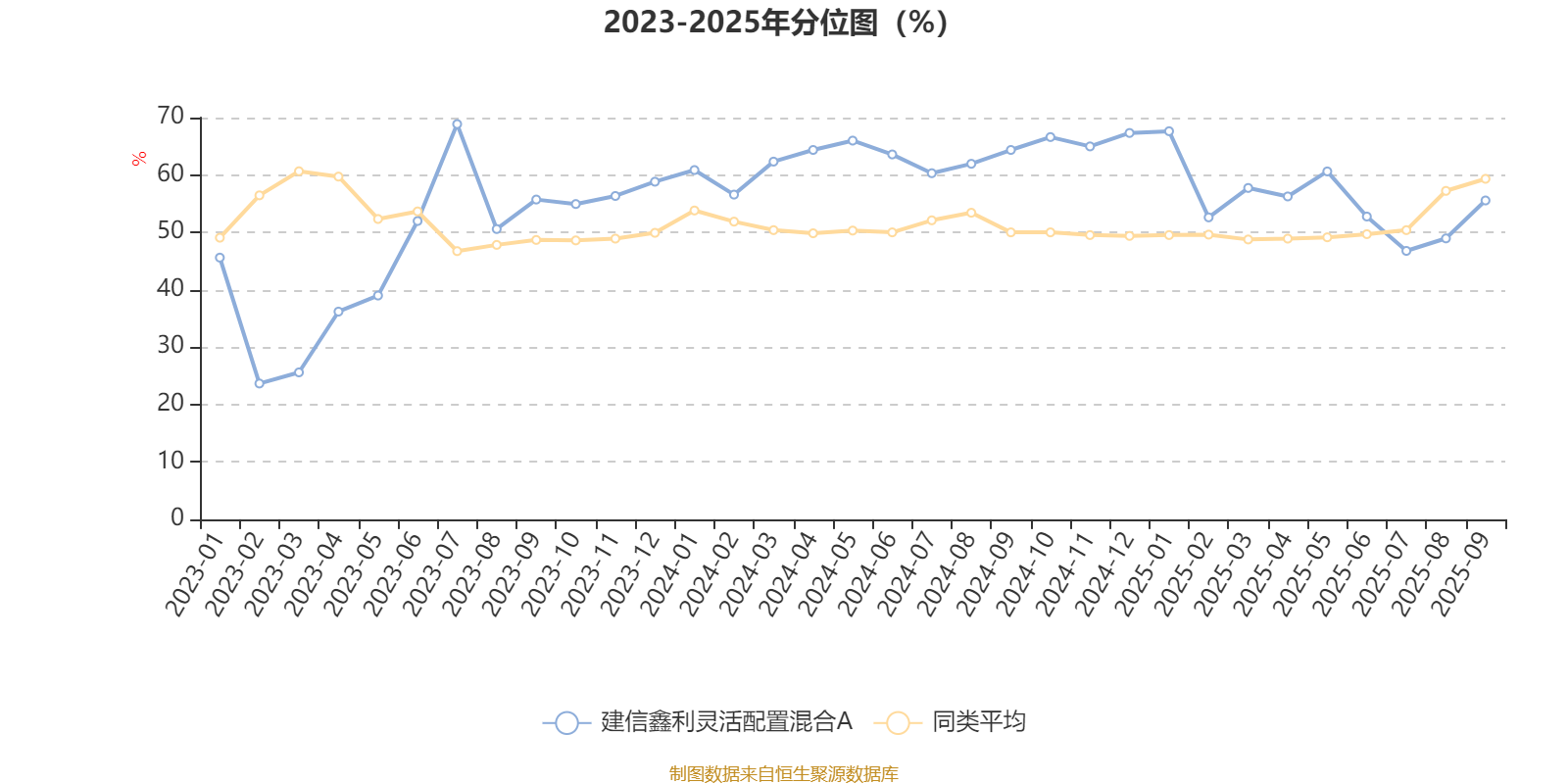 通过所选区间该基金净值增长率分位图,可以观察该基金与同类基金业绩比较情况。图为坐标原点到区间内某时点的净值增长率在同类基金中的分位数。