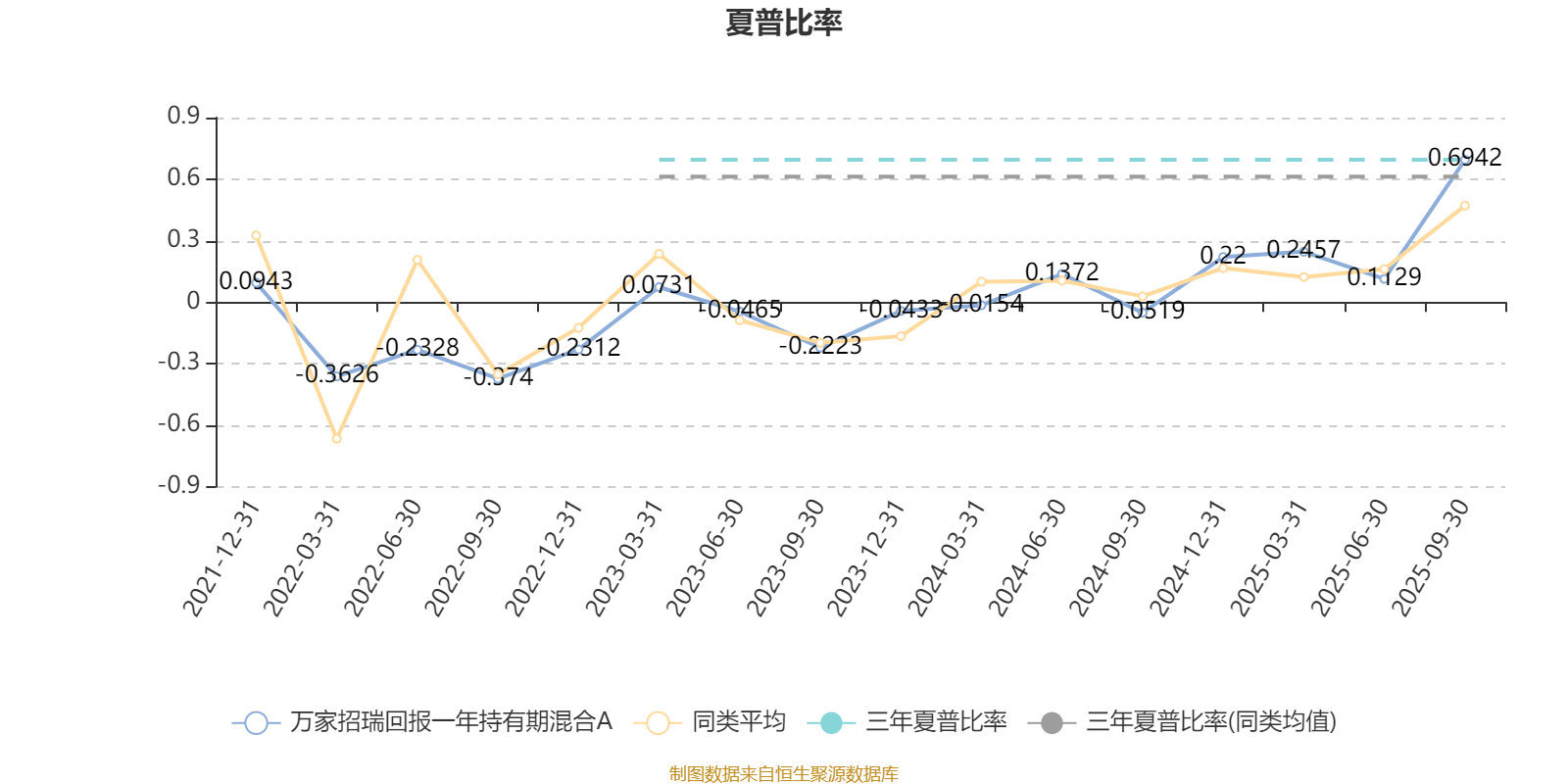 截至9月30日,基金近三年夏普比率为0.6943,位于同类可比基金248/553。