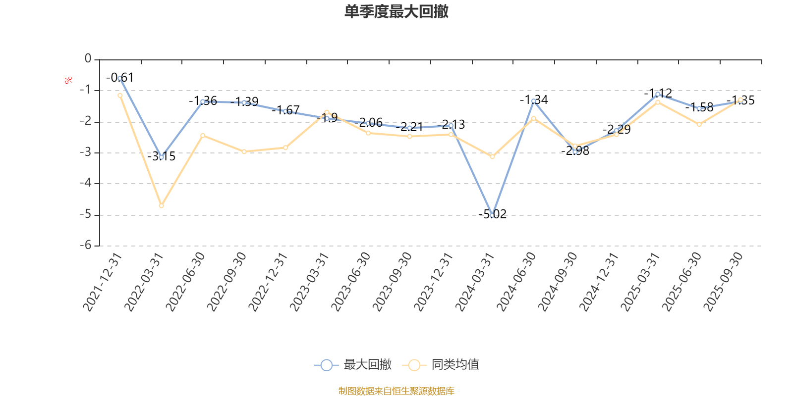 截至10月24日,基金近三年最大回撤为6.86%,同类可比基金排名308/552。单季度最大回撤出现在2024年一季度,为5.02%。