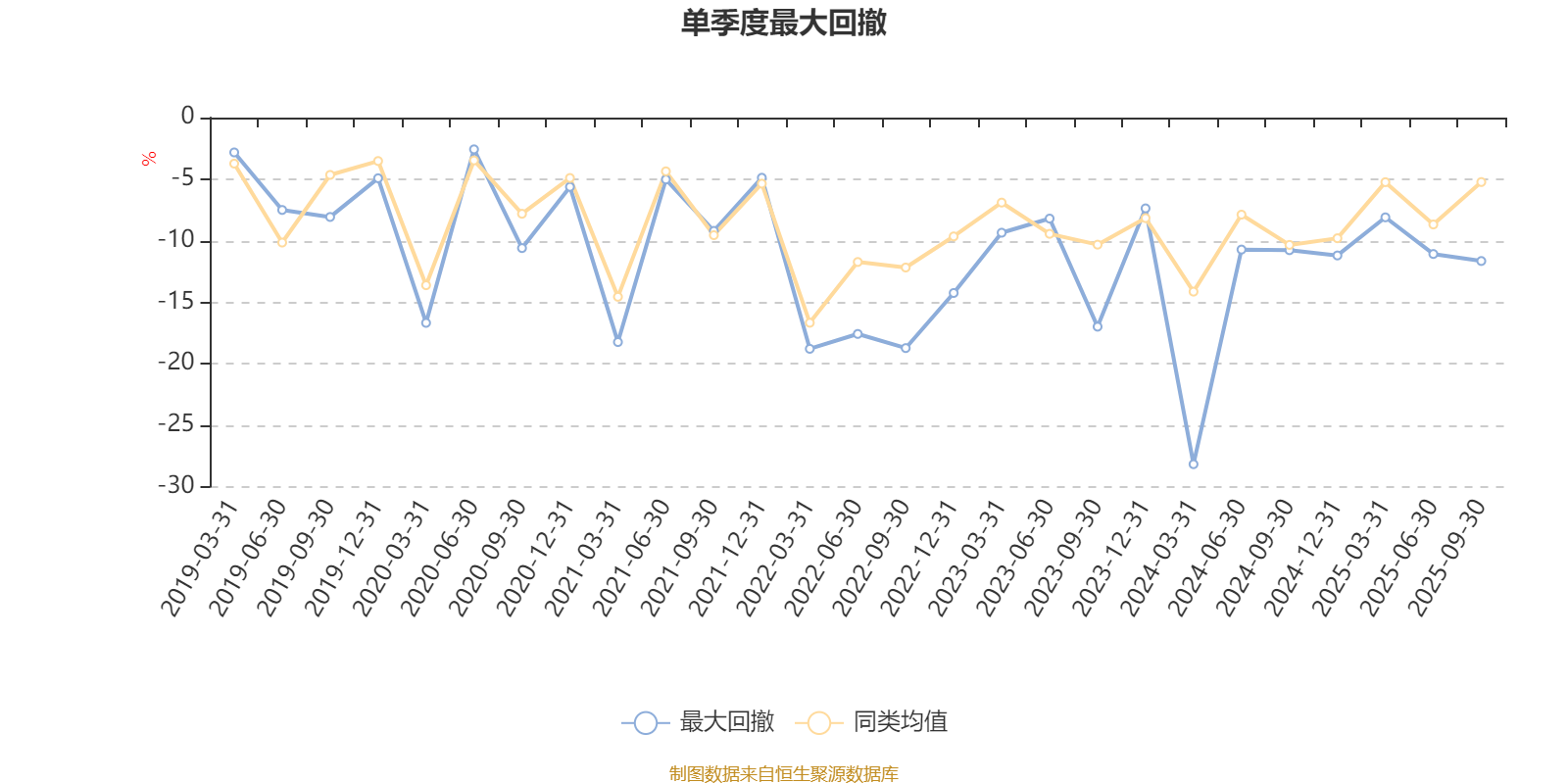 截至10月24日,基金近三年最大回撤为35.43%,同类可比基金排名727/1283。单季度最大回撤出现在2024年一季度,为28.18%。