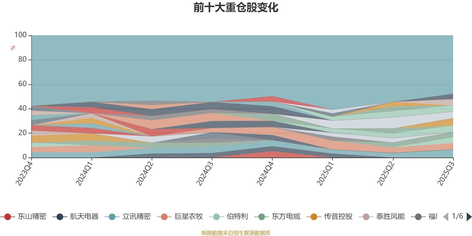截至2025年三季度末,基金十大重仓股分别是立讯精密、英维克、东威科技、芯源微、新易盛、菲利华、复旦微电、芯原股份、科泰电源、兆易创新。