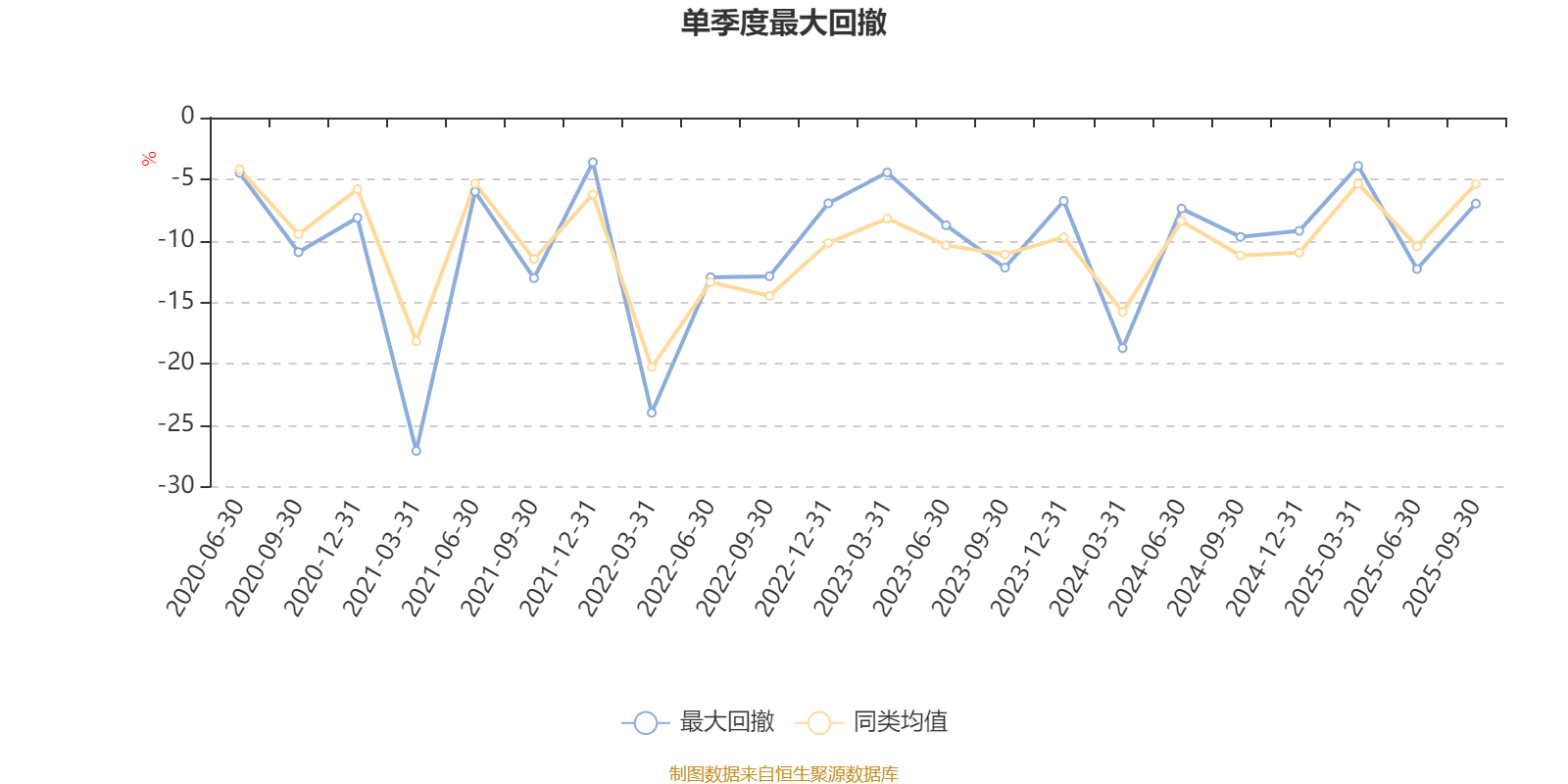截至10月24日,基金近三年最大回撤为32.52%,同类可比基金排名95/252。单季度最大回撤出现在2021年一季度,为27.1%。