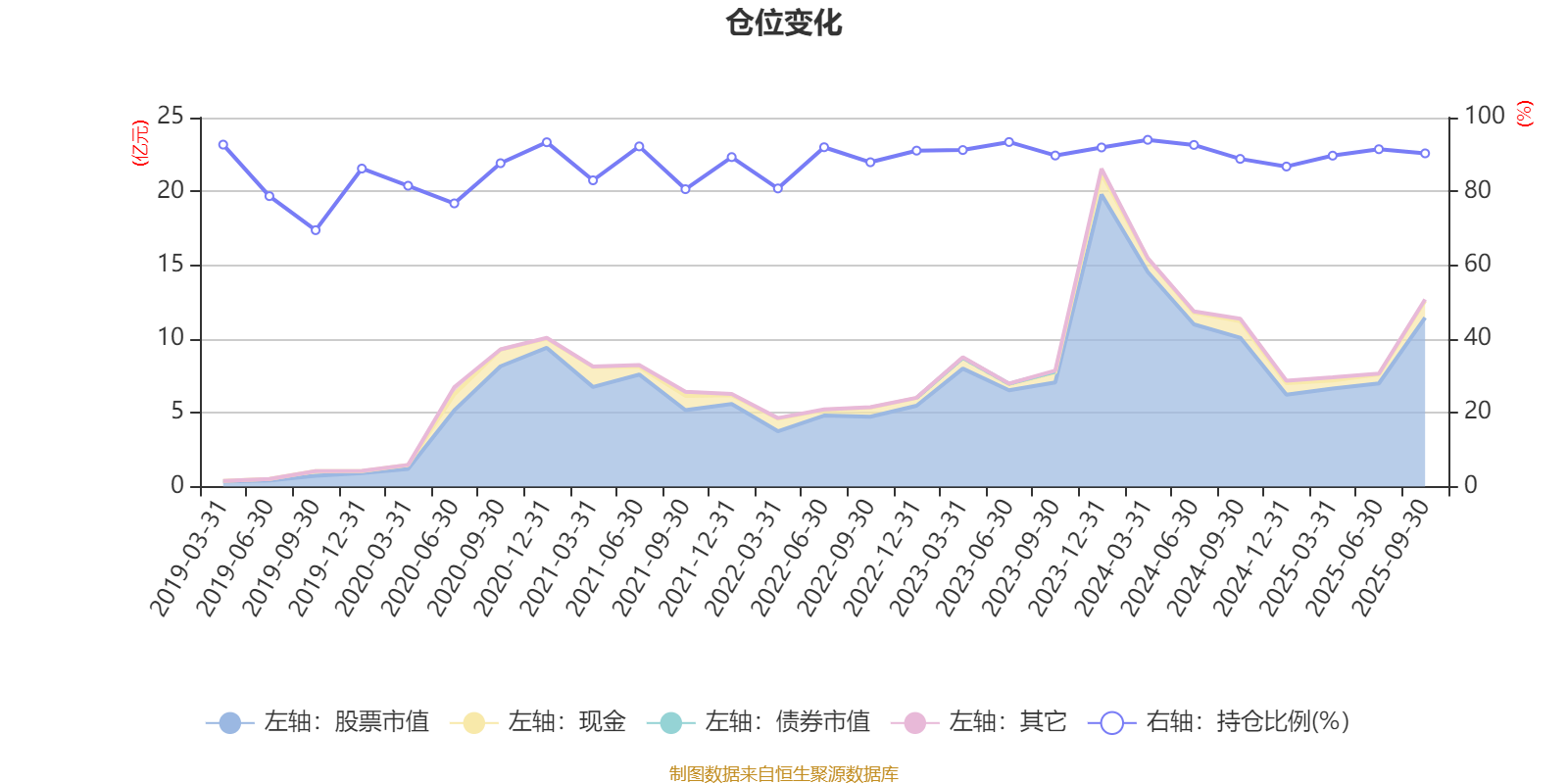 据定期报告数据统计,近三年平均股票仓位为90.9%,同类平均为72.18%。2024年一季度末基金达到93.98%的最高仓位,2019年三季度末最低,为69.49%。
