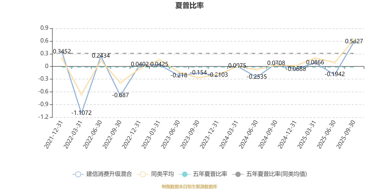 截至9月30日,基金近三年夏普比率为0.2755,位于同类可比基金967/1285。