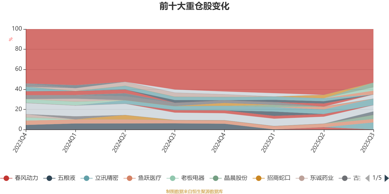截至2025年三季度末,基金十大重仓股分别是立讯精密、宁德时代、贵州茅台、歌尔股份、芒果超媒、晶晨股份、欢瑞世纪、华策影视、鱼跃医疗、曼卡龙。