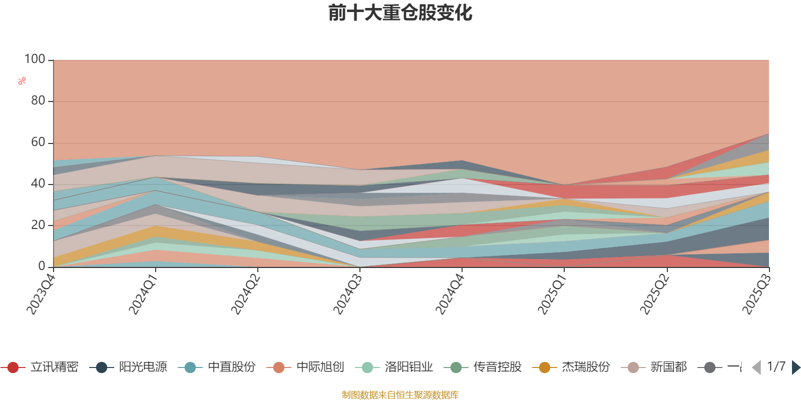截至2025年三季度末,基金十大重仓股分别是腾讯控股、新易盛、北方华创、阳光电源、中际旭创、阿里巴巴-W、华虹半导体、小商品城、中芯国际、东威科技。