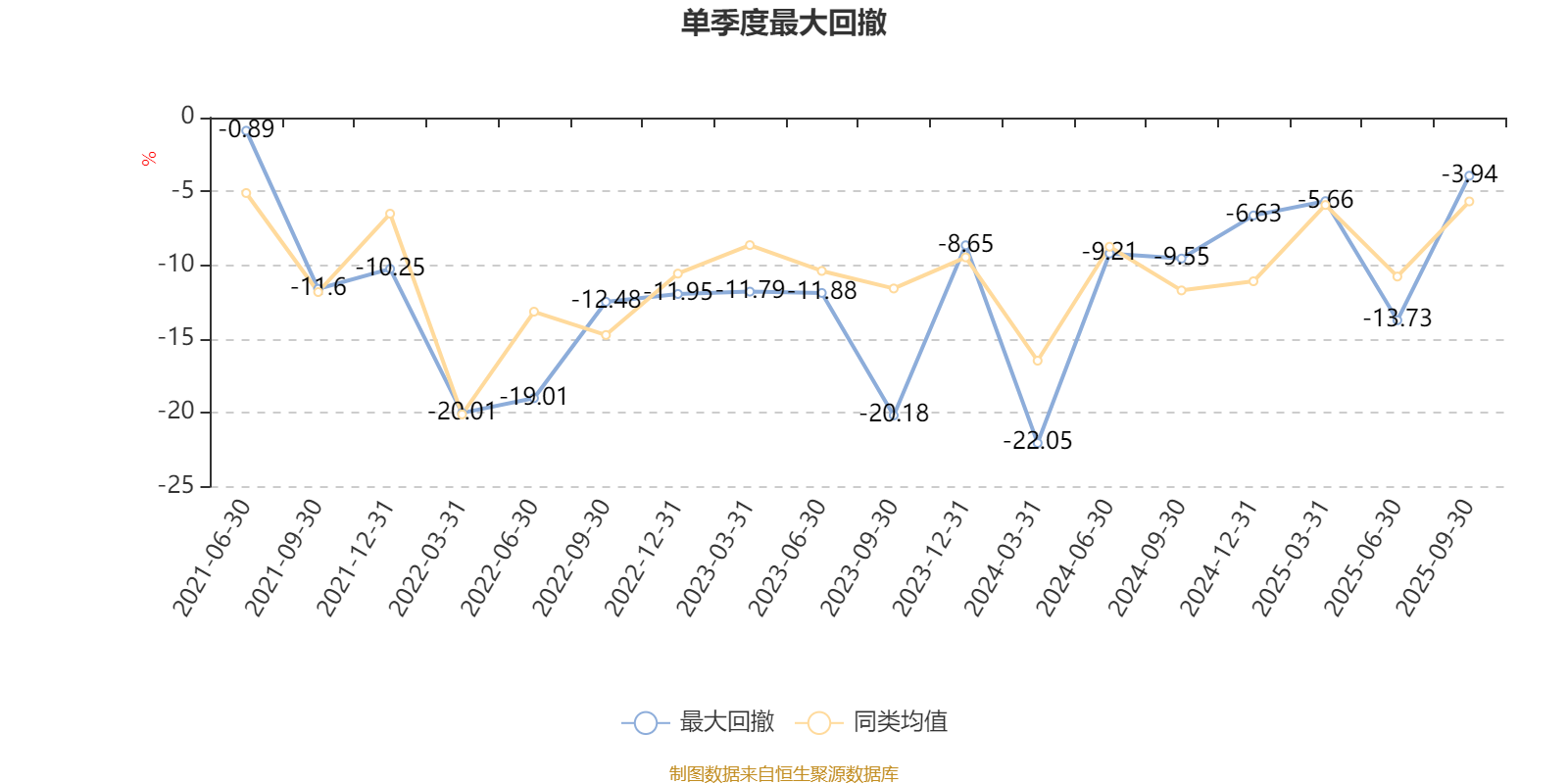 截至10月24日,基金近三年最大回撤为45.7%,同类可比基金排名449/519。单季度最大回撤出现在2024年一季度,为22.05%。