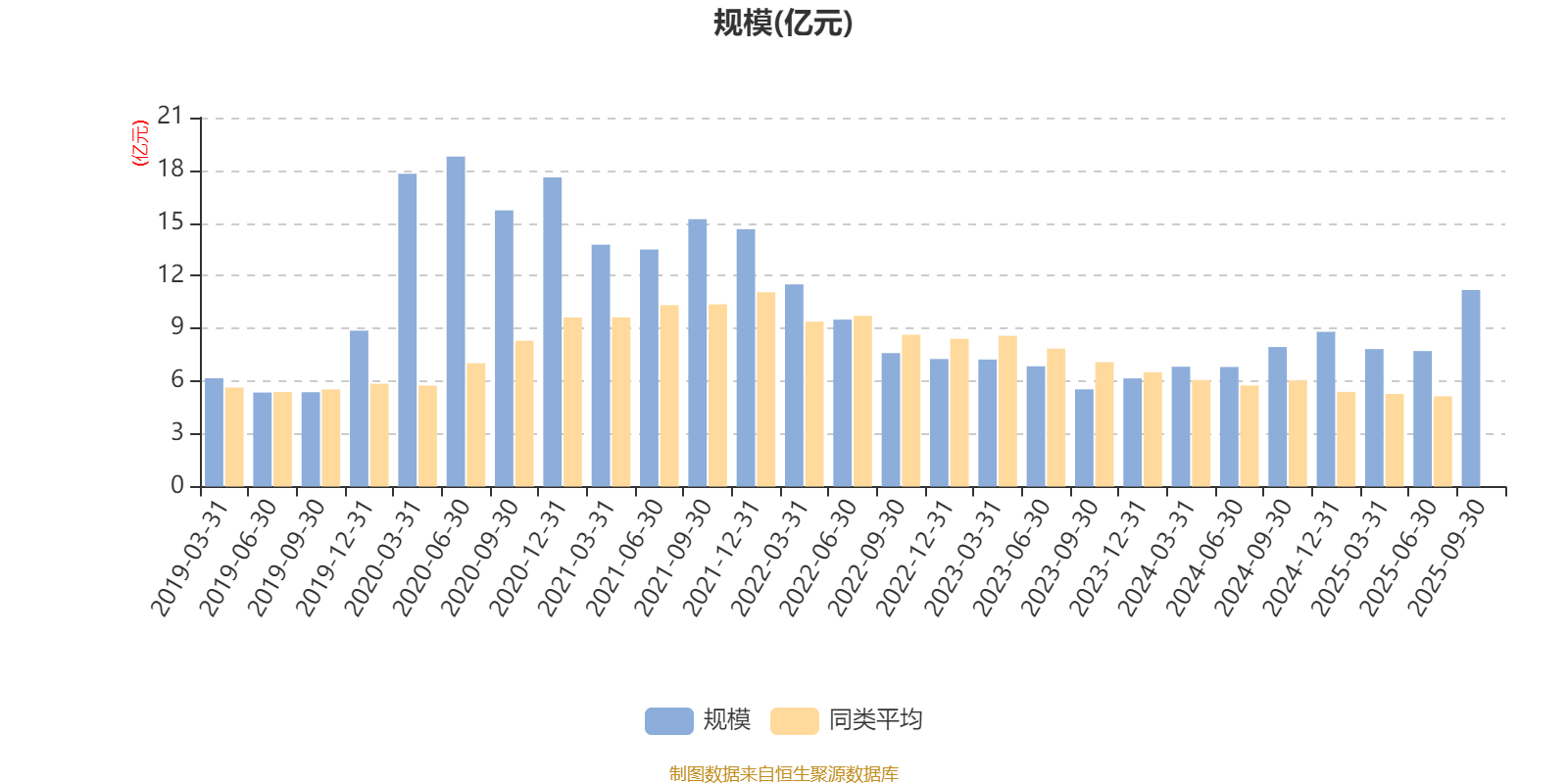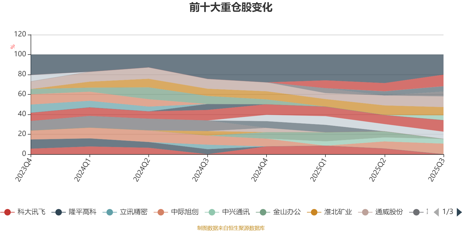 该基金持股集中度较高,近2年前十大重仓股集中度长期超过60%。截至2025年三季度末,基金十大重仓股分别是兆易创新、海光信息、新易盛、中际旭创、天孚通信、恒玄科技、乐鑫科技、鸣志电器、绿的谐波、中兴通讯。