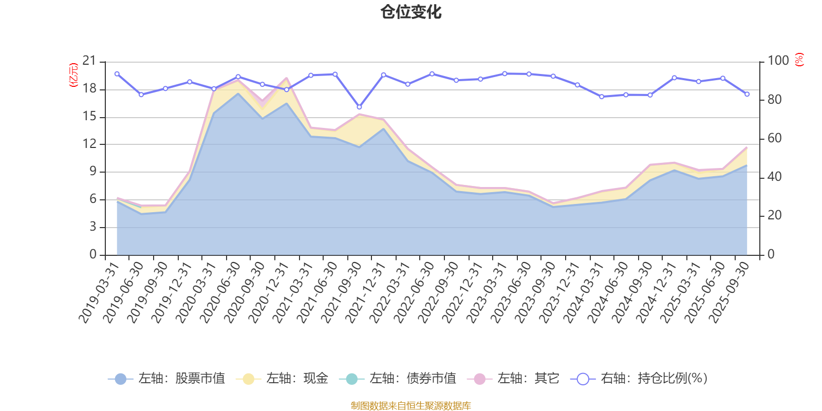 据定期报告数据统计,近三年平均股票仓位为88.53%,同类平均为72.18%。2023年一季度末基金达到93.8%的最高仓位,2021年三季度末最低,为76.57%。