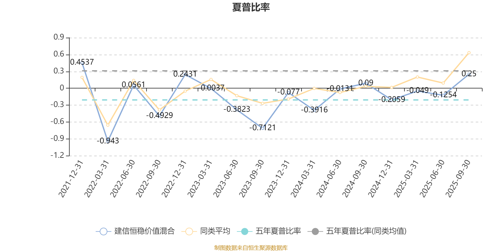截至9月30日,基金近三年夏普比率为-0.2382,位于同类可比基金1251/1285。