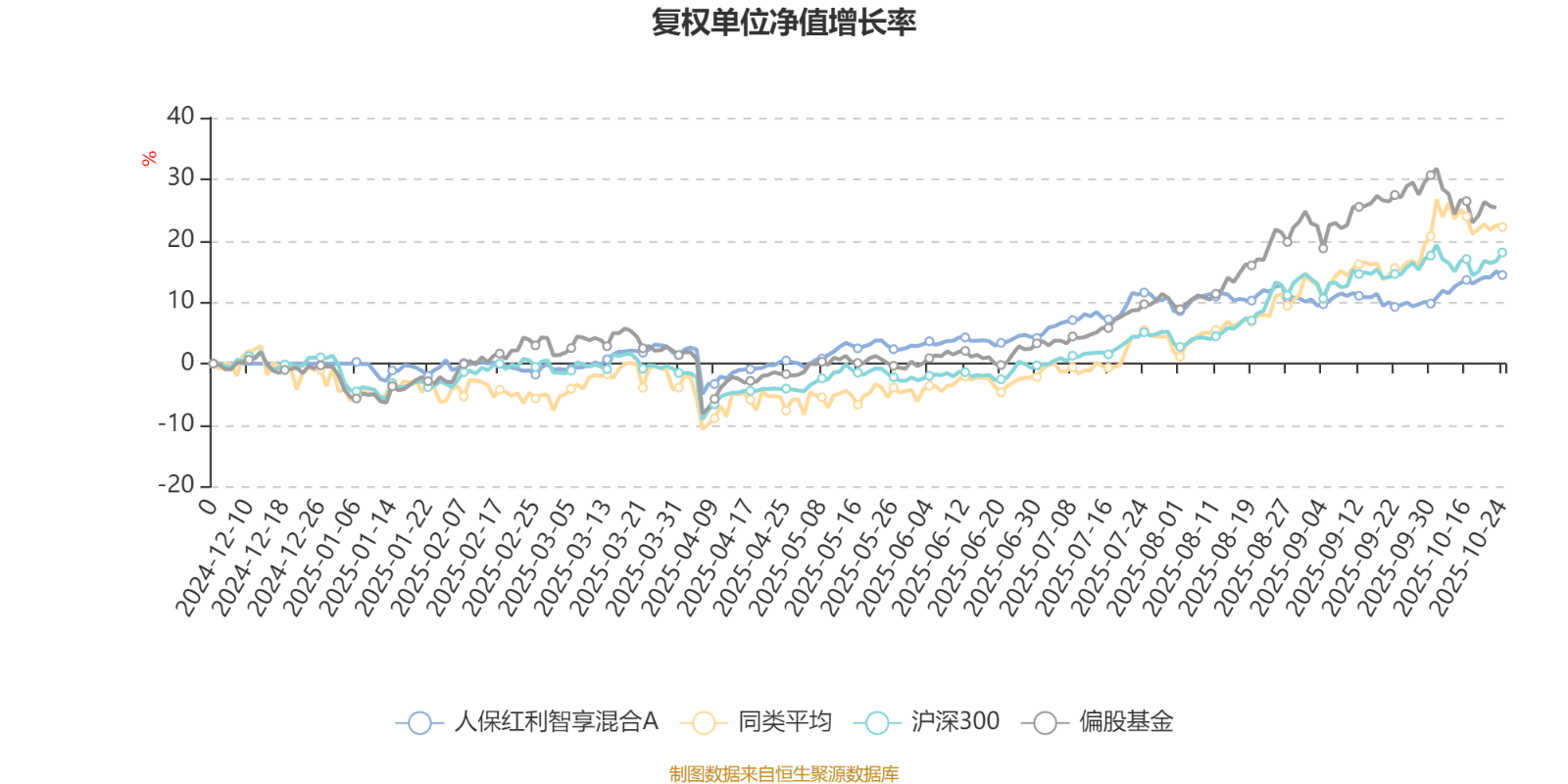 截至10月24日,人保红利智享混合A近三个月复权单位净值增长率为2.56%,位于同类可比基金47/49;近半年复权单位净值增长率为14.07%,位于同类可比基金44/49。