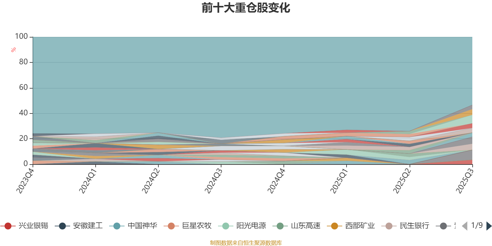 截至2025年三季度末,基金十大重仓股分别是紫金矿业、长盈精密、小商品城、中国海油、潞安环能、圆通速递、申通快递、兴业银锡、金钼股份、锡业股份。