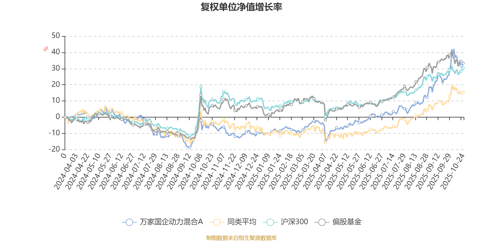 截至10月24日,万家国企动力混合A近三个月复权单位净值增长率为24.82%,位于同类可比基金10/49;近半年复权单位净值增长率为43.68%,位于同类可比基金14/49;近一年复权单位净值增长率为40.52%,位于同类可比基金11/42。
