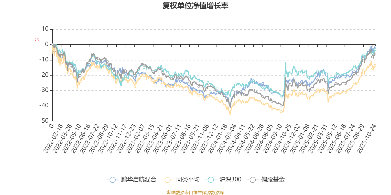 截至10月24日,鹏华启航混合近三个月复权单位净值增长率为19.71%,位于同类可比基金85/265;近半年复权单位净值增长率为28.08%,位于同类可比基金126/265;近一年复权单位净值增长率为28.47%,位于同类可比基金121/265;近三年复权单位净值增长率为18.65%,位于同类可比基金122/253。