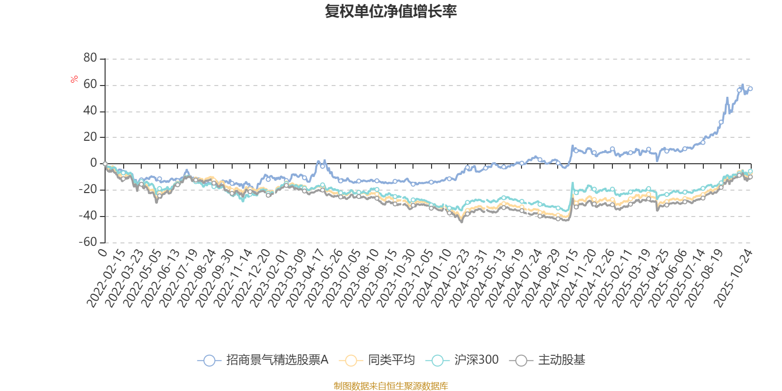 截至10月24日,招商景气精选股票A近三个月复权单位净值增长率为31.27%,位于同类可比基金17/167;近半年复权单位净值增长率为42.60%,位于同类可比基金28/166;近一年复权单位净值增长率为43.69%,位于同类可比基金31/164;近三年复权单位净值增长率为89.85%,位于同类可比基金3/156。