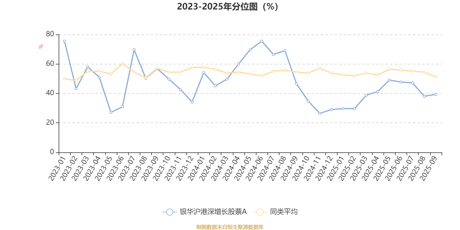 通过所选区间该基金净值增长率分位图,可以观察该基金与同类基金业绩比较情况。图为坐标原点到区间内某时点的净值增长率在同类基金中的分位数。