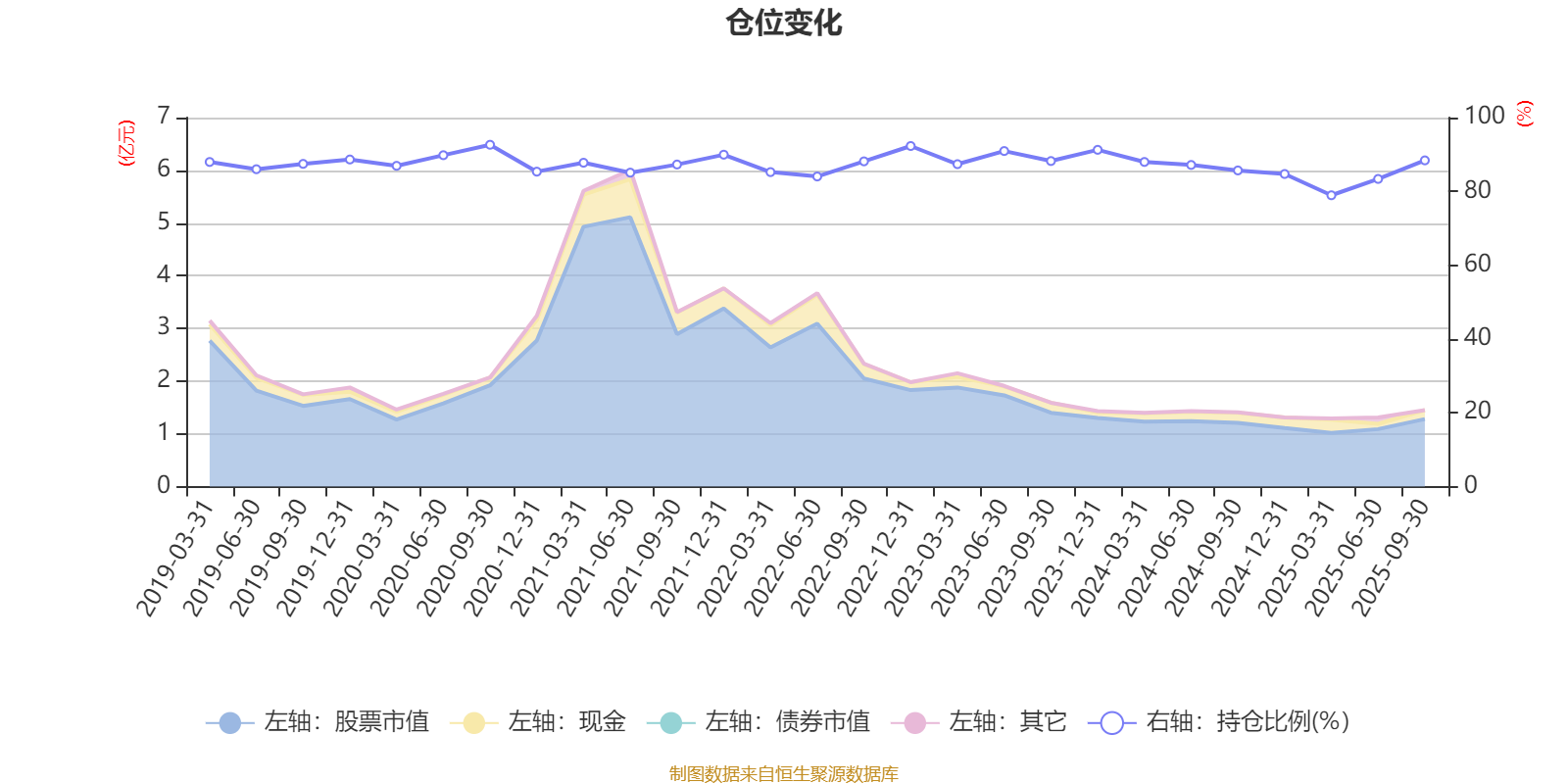 据定期报告数据统计,近三年平均股票仓位为87.2%,同类平均为88.21%。2020年三季度末基金达到92.64%的最高仓位,2025年一季度末最低,为78.95%。