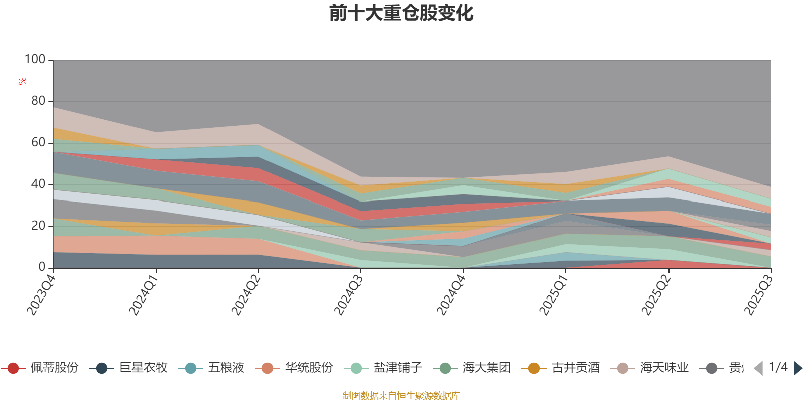 截至2025年三季度末,基金十大重仓股分别是温氏股份、海大集团、牧原股份、东鹏饮料、云天化、海天味业、梅花生物、扬农化工、伊利股份、安琪酵母。