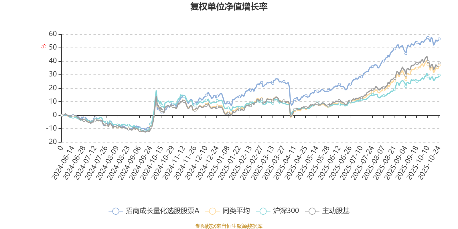 截至10月24日,招商成长量化选股股票A近三个月复权单位净值增长率为14.99%,位于同类可比基金84/167;近半年复权单位净值增长率为36.82%,位于同类可比基金44/166;近一年复权单位净值增长率为47.94%,位于同类可比基金21/164。