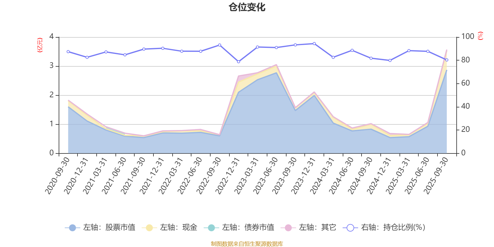 据定期报告数据统计,近三年平均股票仓位为86.5%,同类平均为88.29%。2023年末基金达到94.38%的最高仓位,2022年末最低,为78.79%。