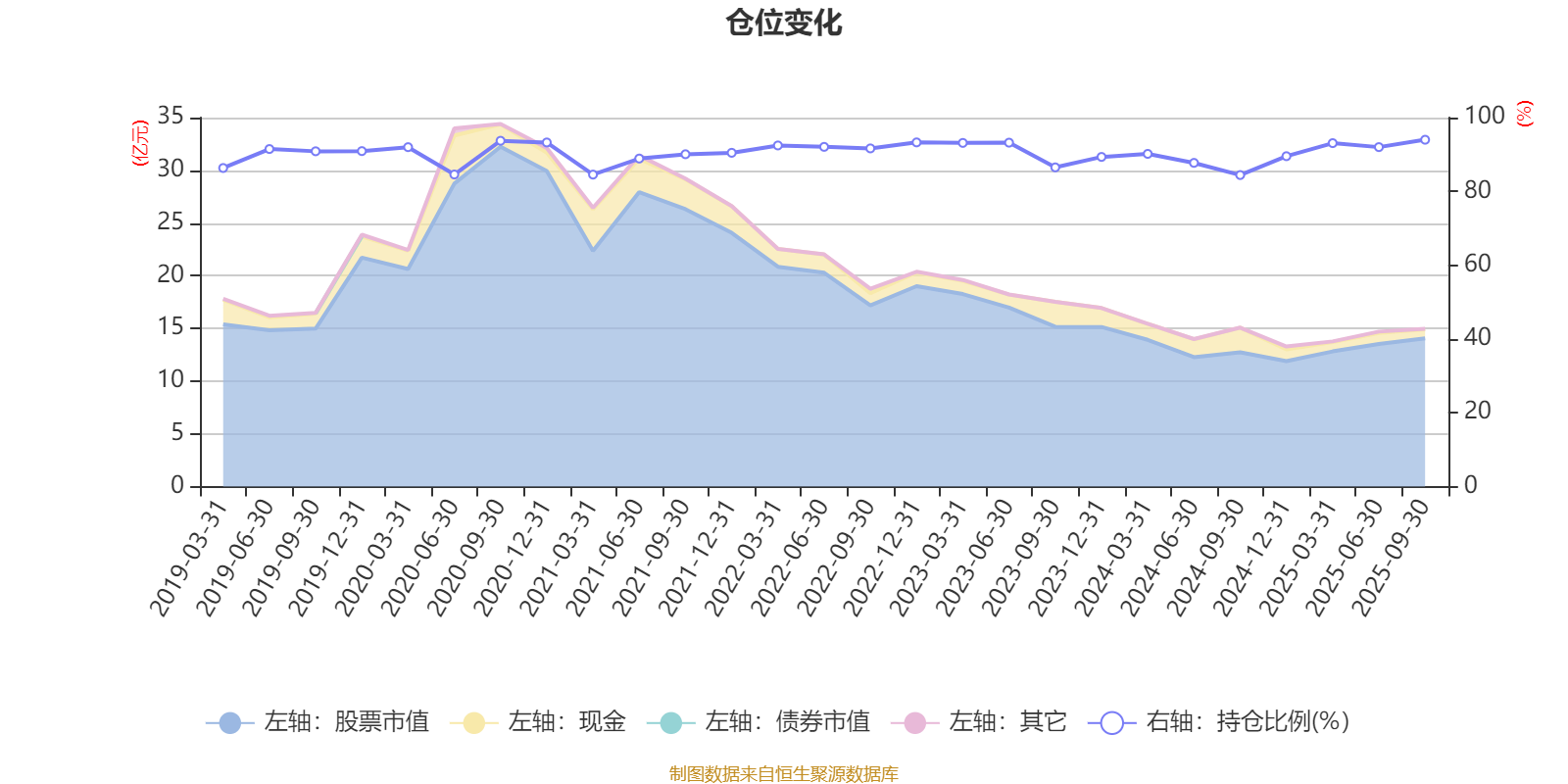 据定期报告数据统计,近三年平均股票仓位为90.54%,同类平均为88.29%。2025年三季度末基金达到94%的最高仓位,2024年三季度末最低,为84.43%。