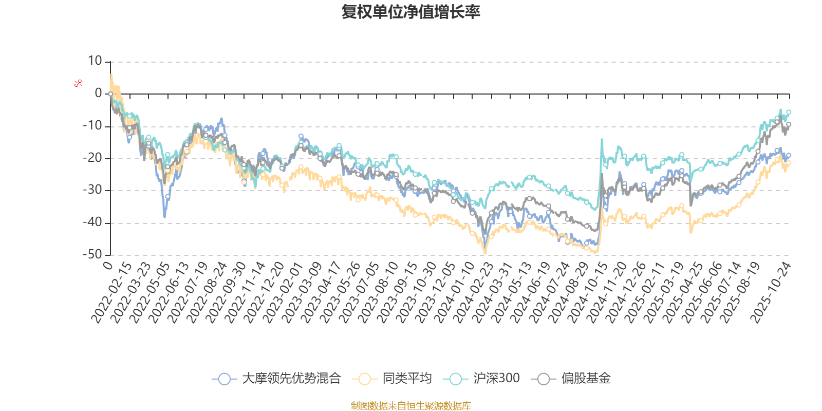 截至10月24日,大摩领先优势混合近三个月复权单位净值增长率为8.35%,位于同类可比基金451/621;近半年复权单位净值增长率为17.32%,位于同类可比基金485/618;近一年复权单位净值增长率为17.99%,位于同类可比基金451/611;近三年复权单位净值增长率为8.08%,位于同类可比基金311/518。