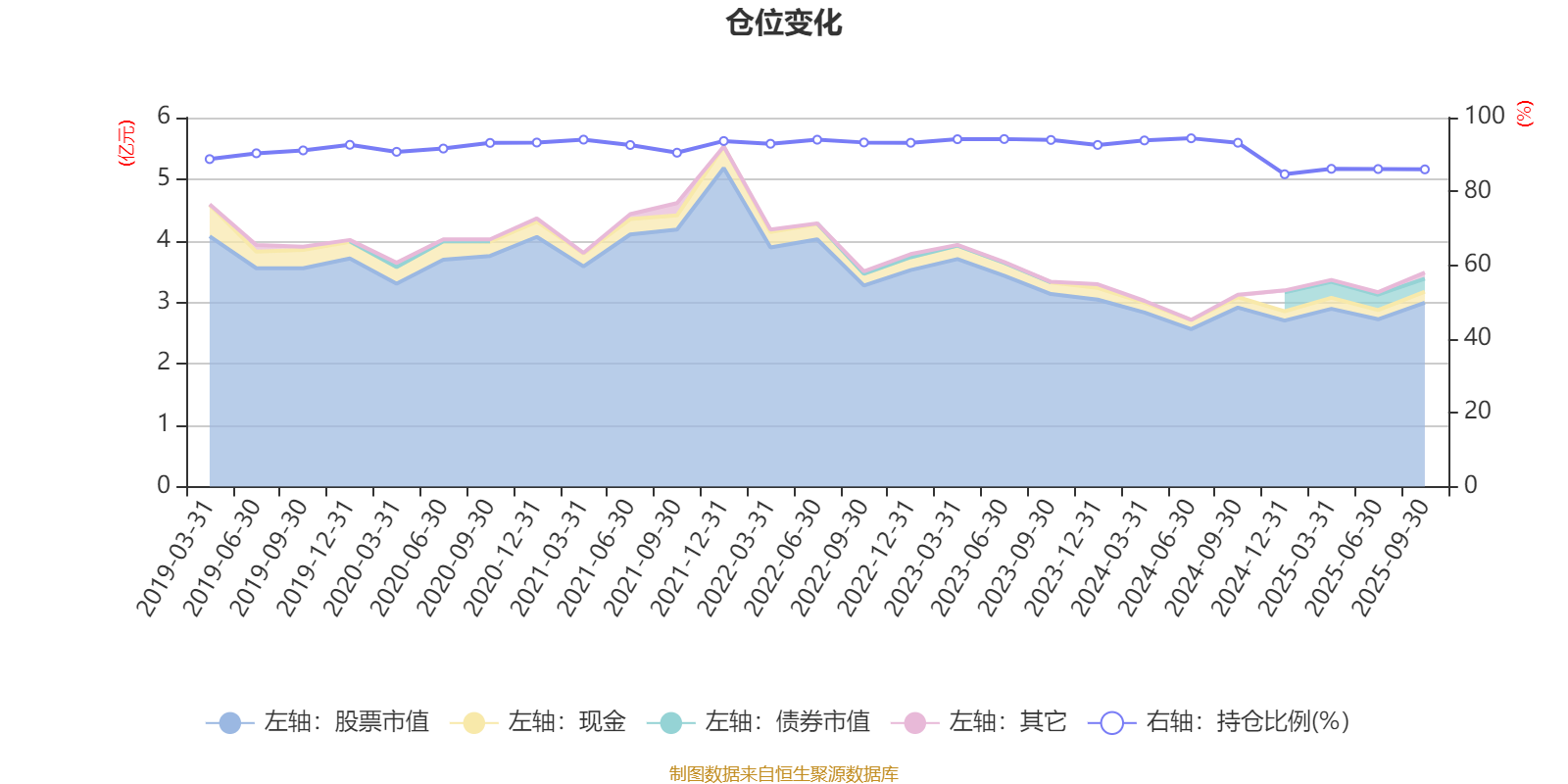 据定期报告数据统计,近三年平均股票仓位为91.02%,同类平均为85.51%。2024年上半年末基金达到94.39%的最高仓位,2024年末最低,为84.65%。
