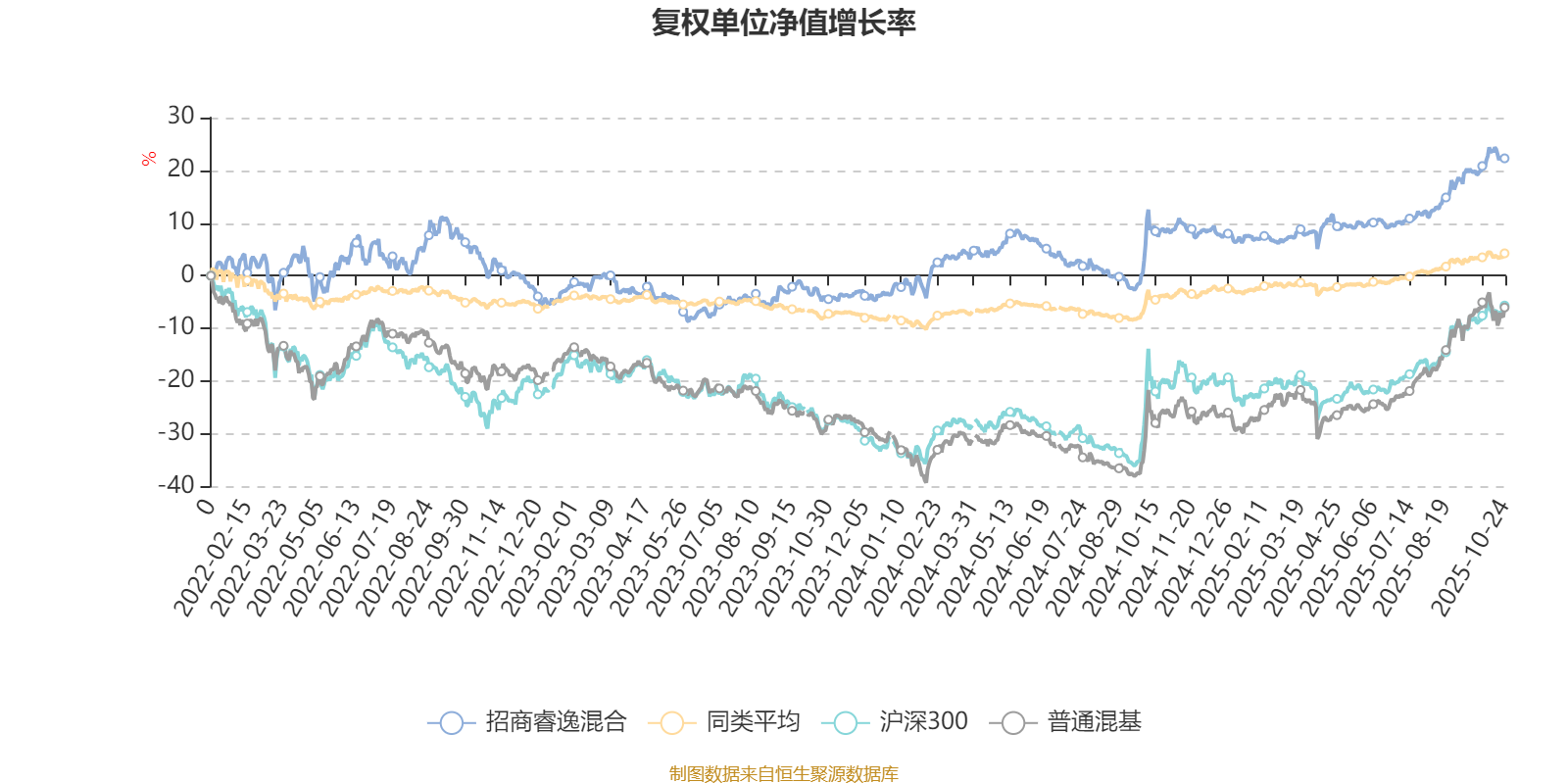 截至10月24日,招商睿逸混合近三个月复权单位净值增长率为9.30%,位于同类可比基金25/629;近半年复权单位净值增长率为11.13%,位于同类可比基金63/629;近一年复权单位净值增长率为13.02%,位于同类可比基金73/623;近三年复权单位净值增长率为18.59%,位于同类可比基金97/556。