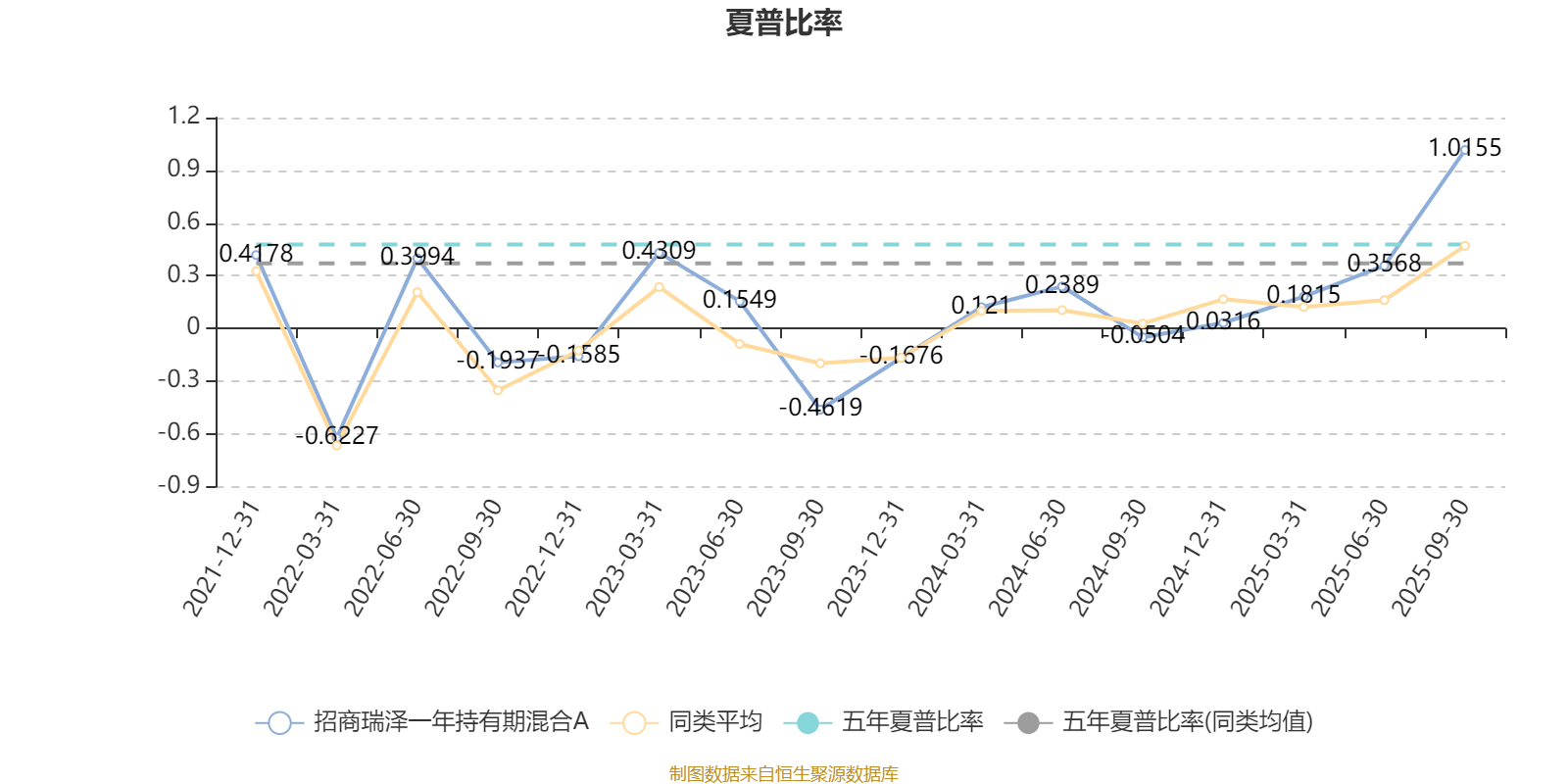 截至9月30日,基金近三年夏普比率为1.0797,位于同类可比基金62/553。