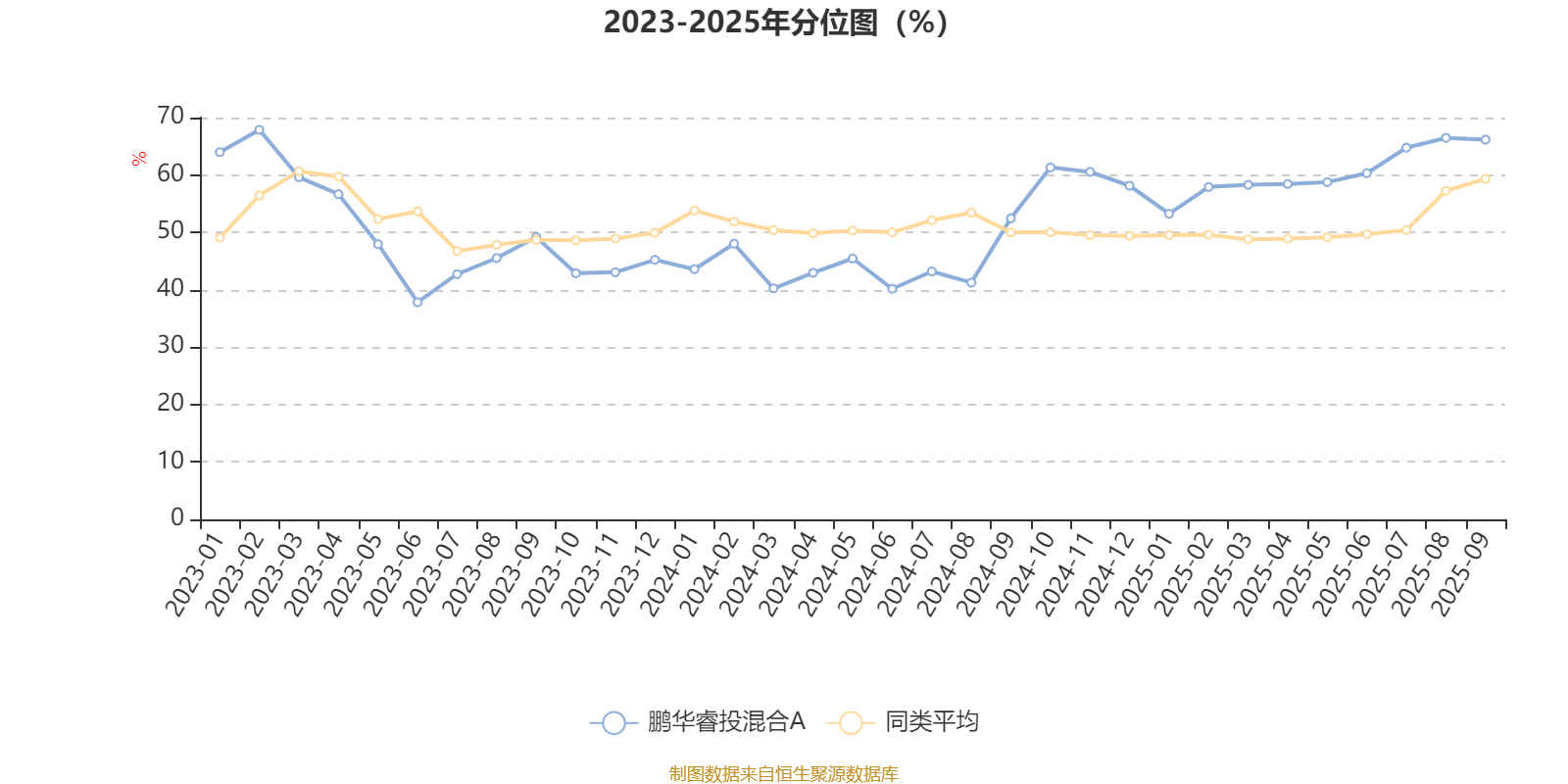 通过所选区间该基金净值增长率分位图,可以观察该基金与同类基金业绩比较情况。图为坐标原点到区间内某时点的净值增长率在同类基金中的分位数。