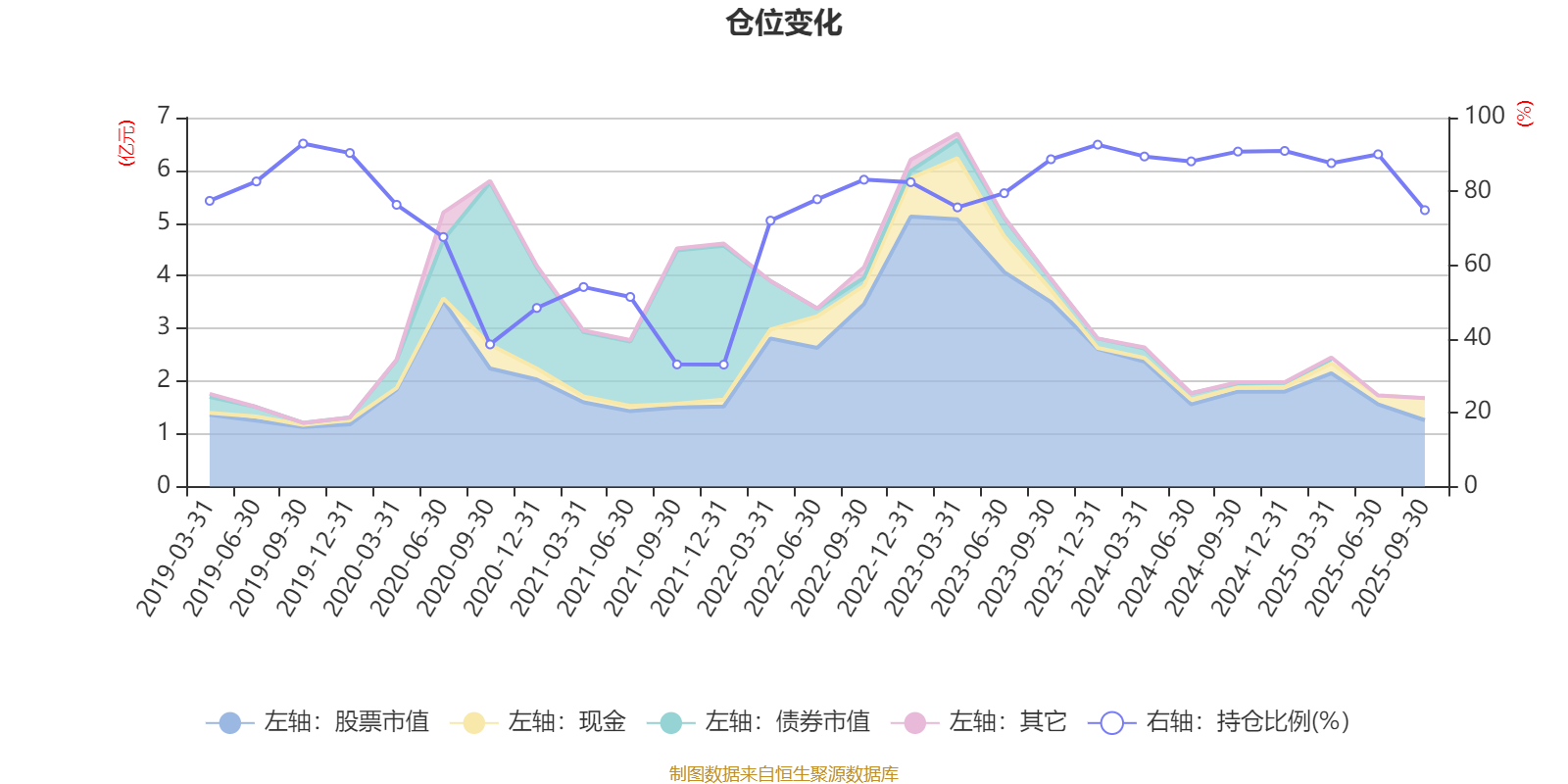 据定期报告数据统计,近三年平均股票仓位为85.92%,同类平均为72.16%。2019年三季度末基金达到92.95%的最高仓位,2021年末最低,为33.06%。