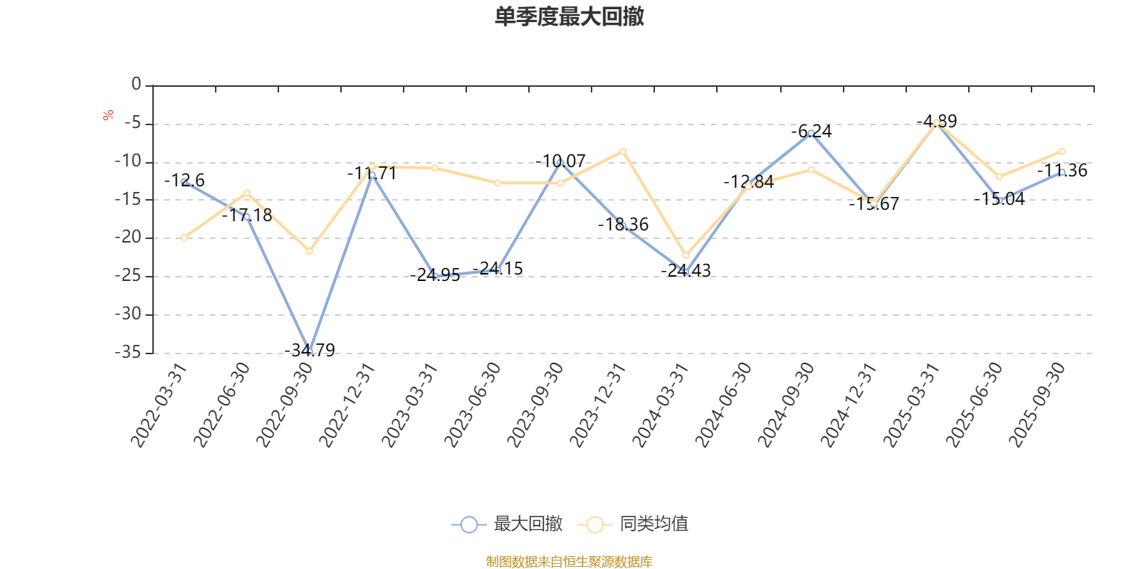 截至10月24日,基金近三年最大回撤为54.59%,同类可比基金排名73/75。单季度最大回撤出现在2022年三季度,为34.79%。