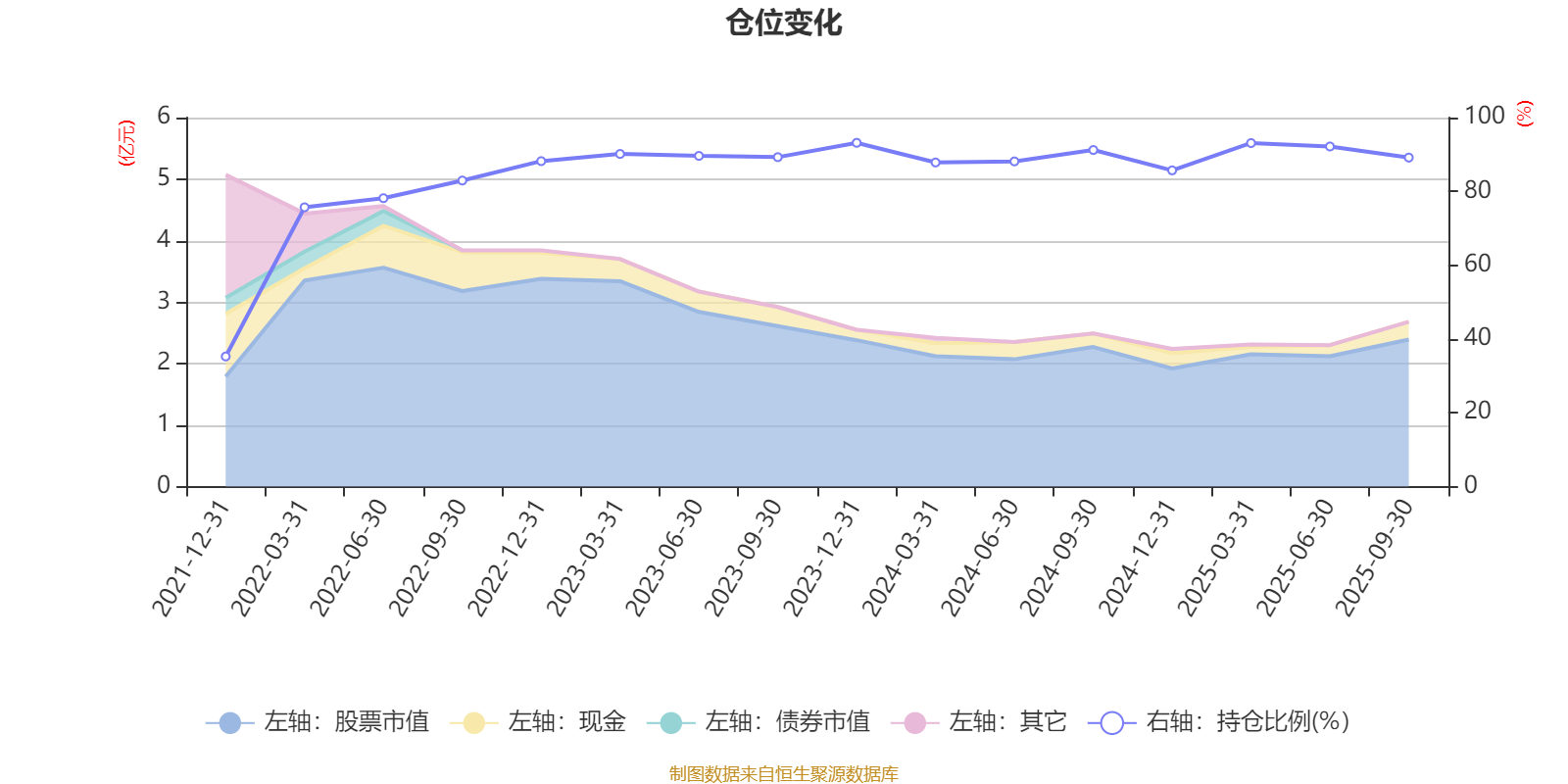 据定期报告数据统计,近三年平均股票仓位为89.81%,同类平均为85.51%。2023年末基金达到93.17%的最高仓位,2021年末最低,为35.26%。