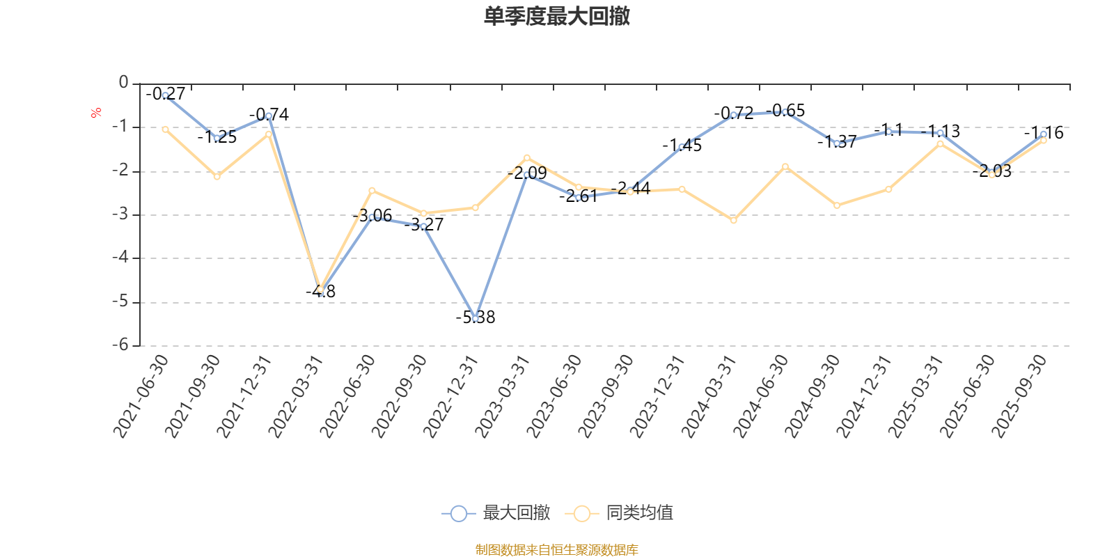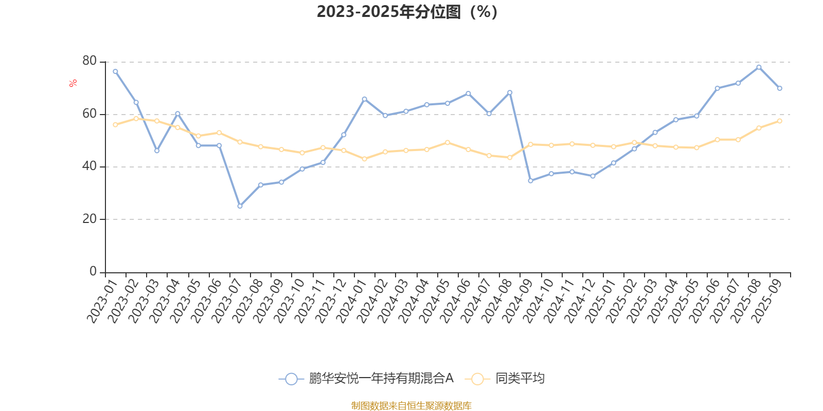 通过所选区间该基金净值增长率分位图,可以观察该基金与同类基金业绩比较情况。图为坐标原点到区间内某时点的净值增长率在同类基金中的分位数。