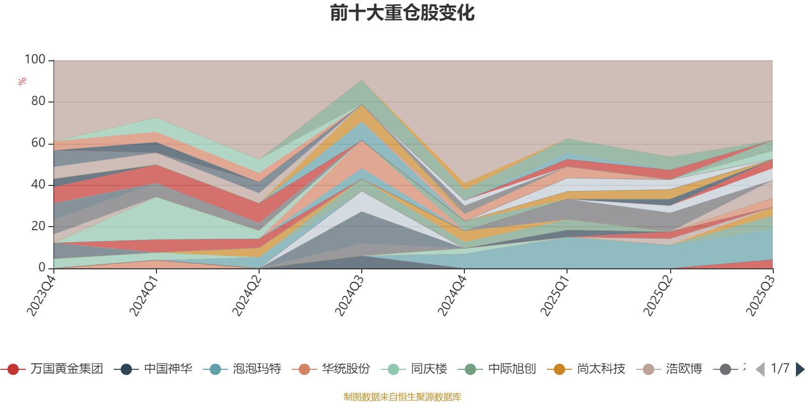 截至2025年三季度末,基金十大重仓股分别是泡泡玛特、科泰电源、中际旭创、三生制药、东材科技、菲利华、中广核矿业、万国黄金集团、尚太科技、华钰矿业。