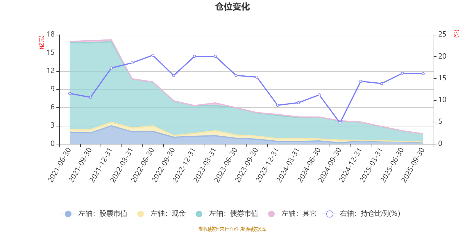 据定期报告数据统计,近三年平均股票仓位为13.84%,同类平均为19.04%。2022年上半年末基金达到20.32%的最高仓位,2024年三季度末最低,为4.82%。