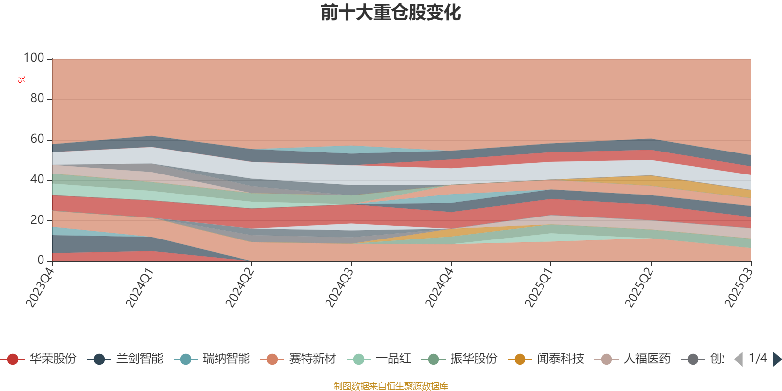 该基金持股集中度较高。截至2025年三季度末,基金十大重仓股分别是北京人力、赛特新材、星球石墨、聚胶股份、奥泰生物、人福医药、振华股份、立高食品、益方生物、药明康德。