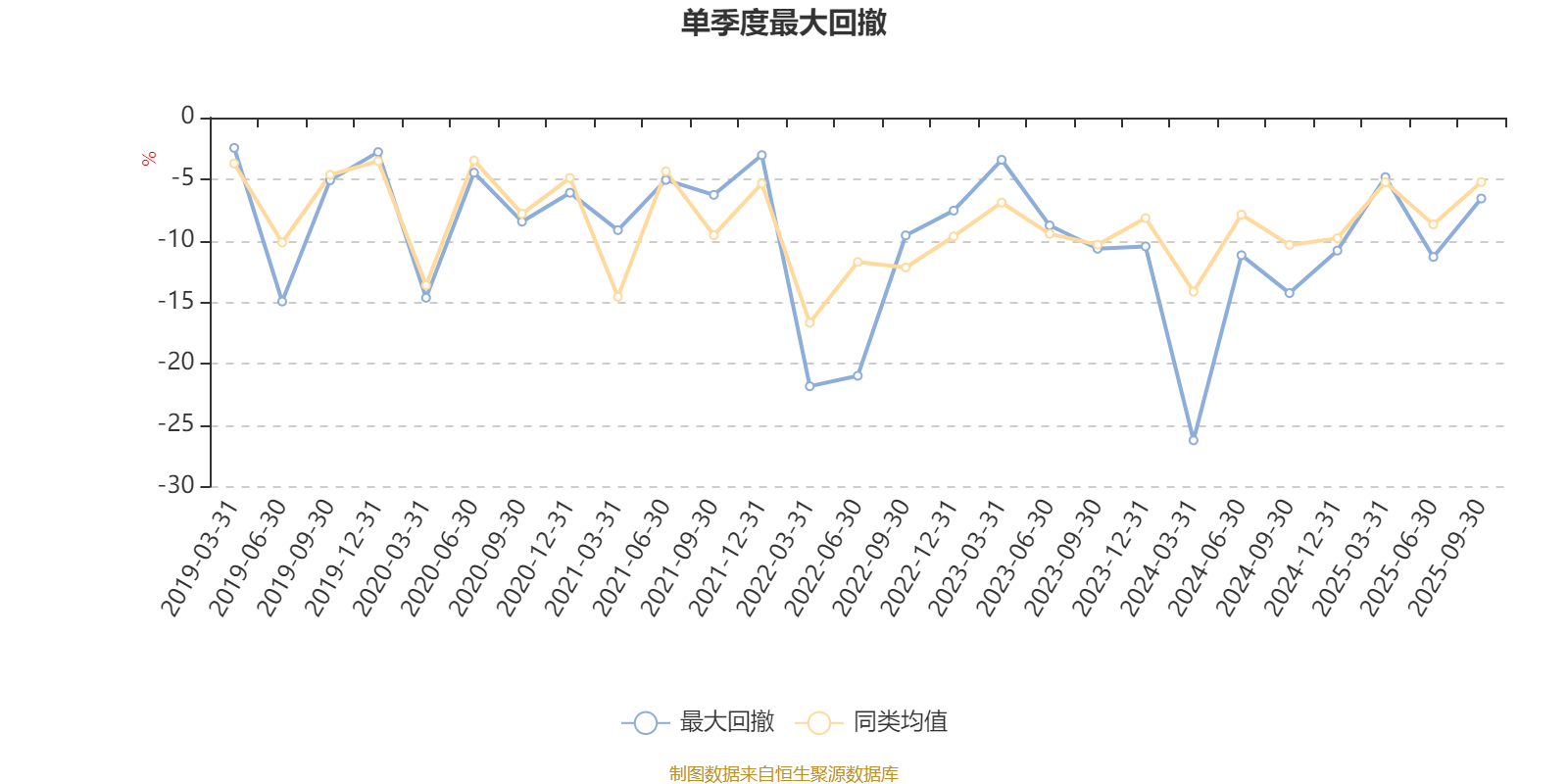 截至10月24日,基金近三年最大回撤为38.66%,同类可比基金排名862/1283。单季度最大回撤出现在2024年一季度,为26.24%。