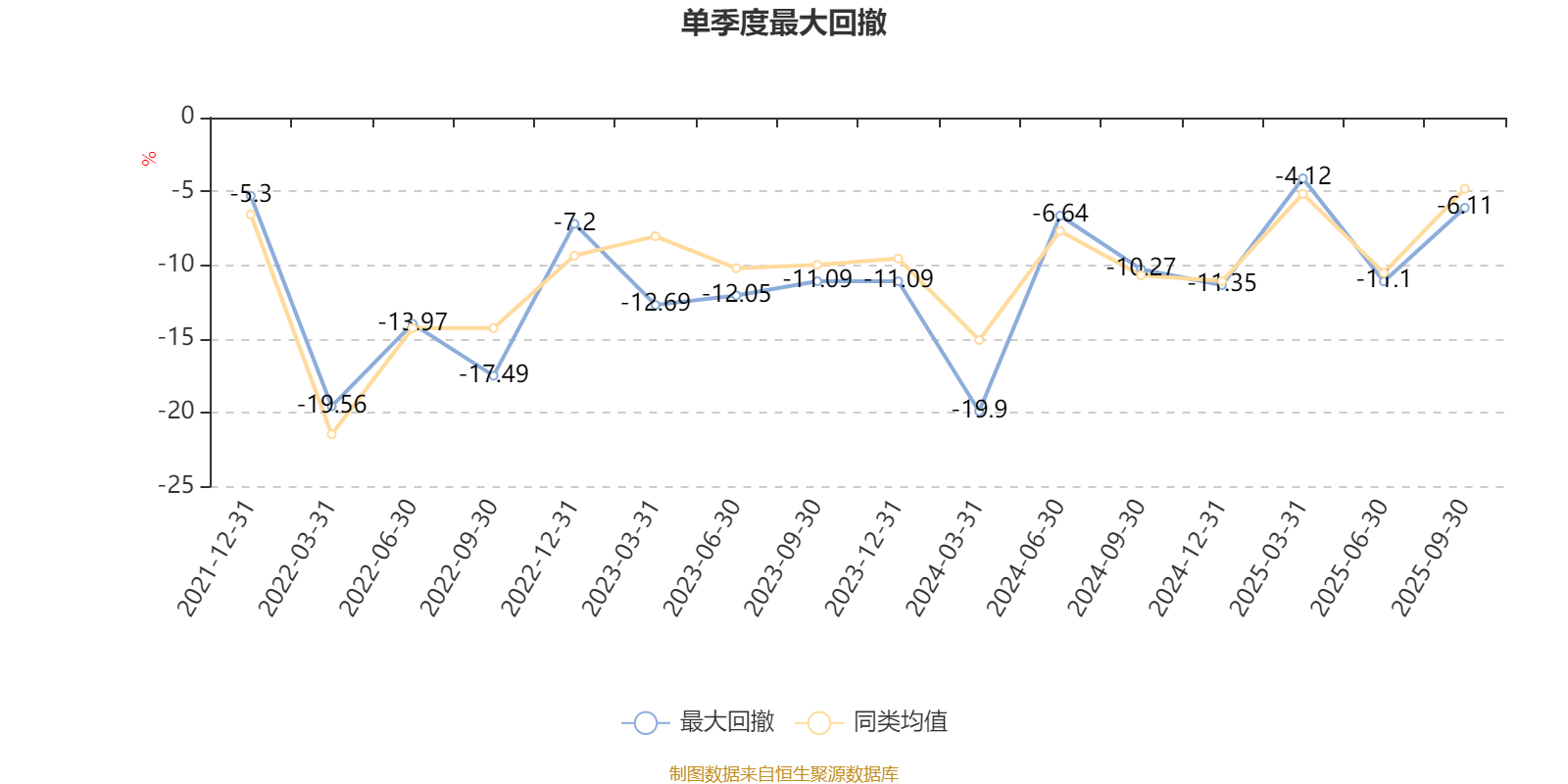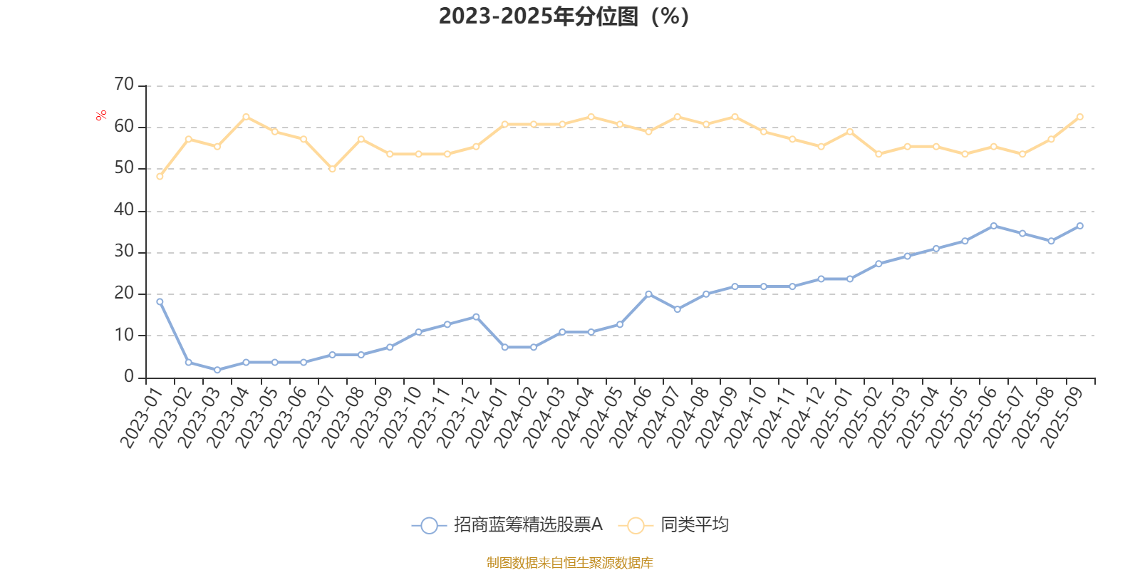 通过所选区间该基金净值增长率分位图,可以观察该基金与同类基金业绩比较情况。图为坐标原点到区间内某时点的净值增长率在同类基金中的分位数。