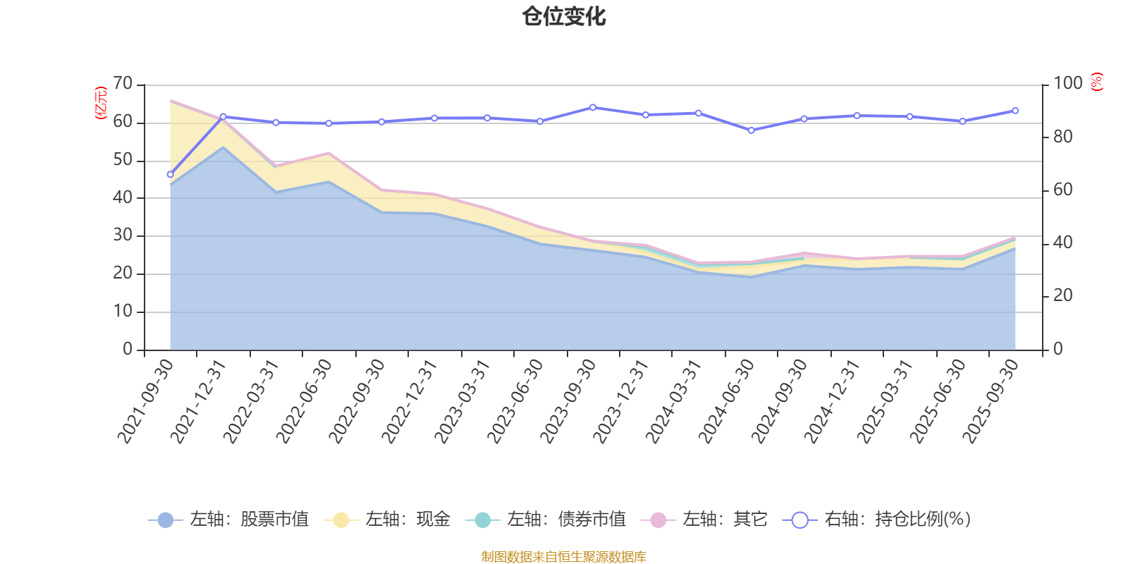 据定期报告数据统计,近三年平均股票仓位为87.73%,同类平均为88.53%。2023年三季度末基金达到91.4%的最高仓位,2021年三季度末最低,为66.17%。