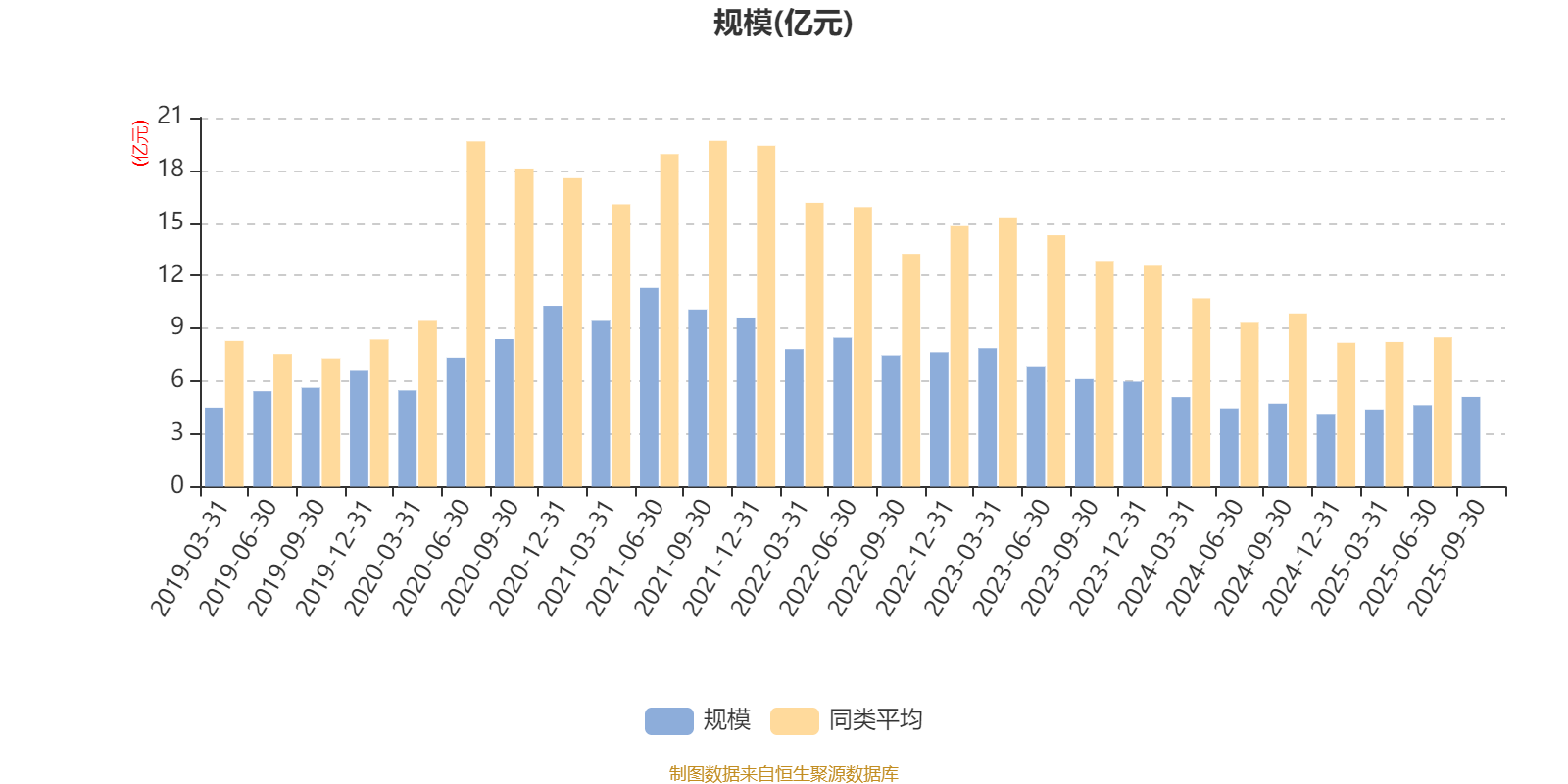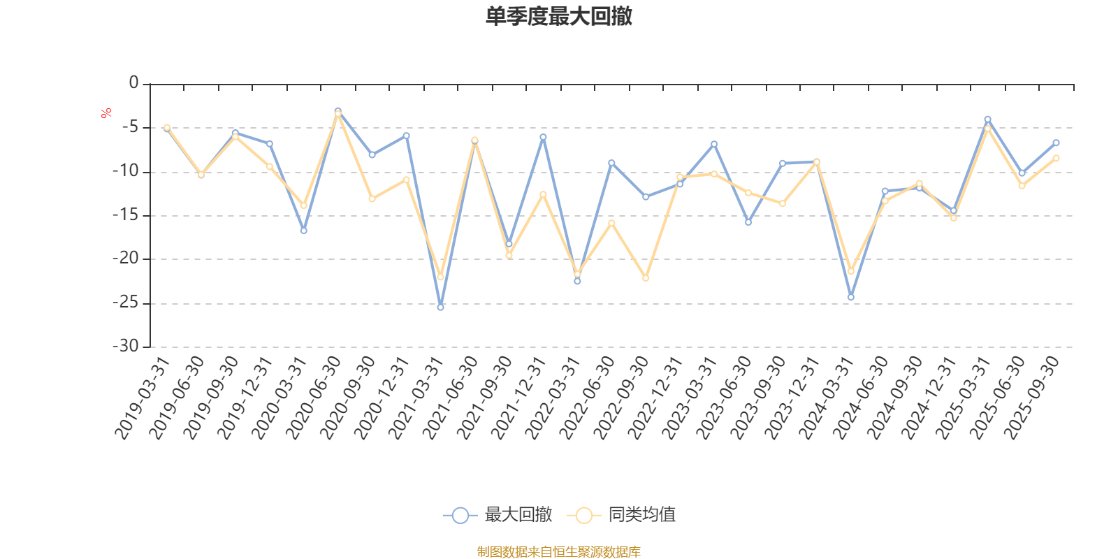 截至9月30日,基金近三年夏普比率为0.1879,位于同类可比基金43/48。