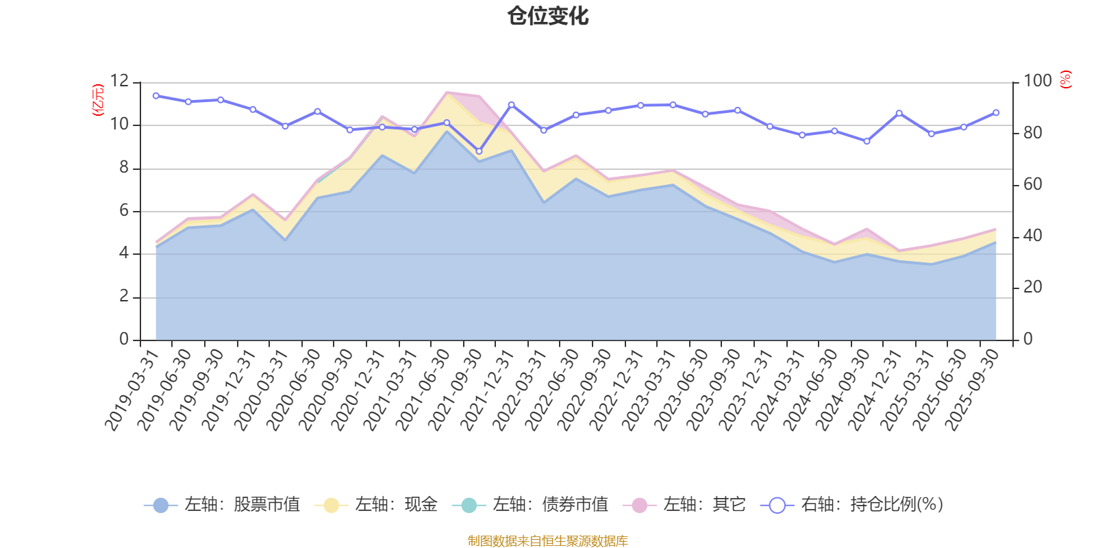 据定期报告数据统计,近三年平均股票仓位为84.87%,同类平均为88.24%。2019年一季度末基金达到94.75%的最高仓位,2021年三季度末最低,为73.24%。